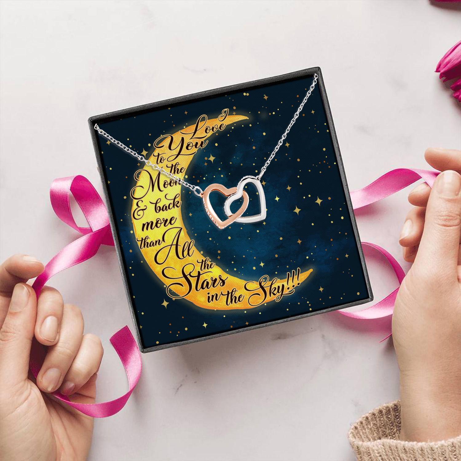 Let’s Shop Love You To The Moon And Back Than All The Stars In The Sky Interlocking Hearts Pendant Necklace!