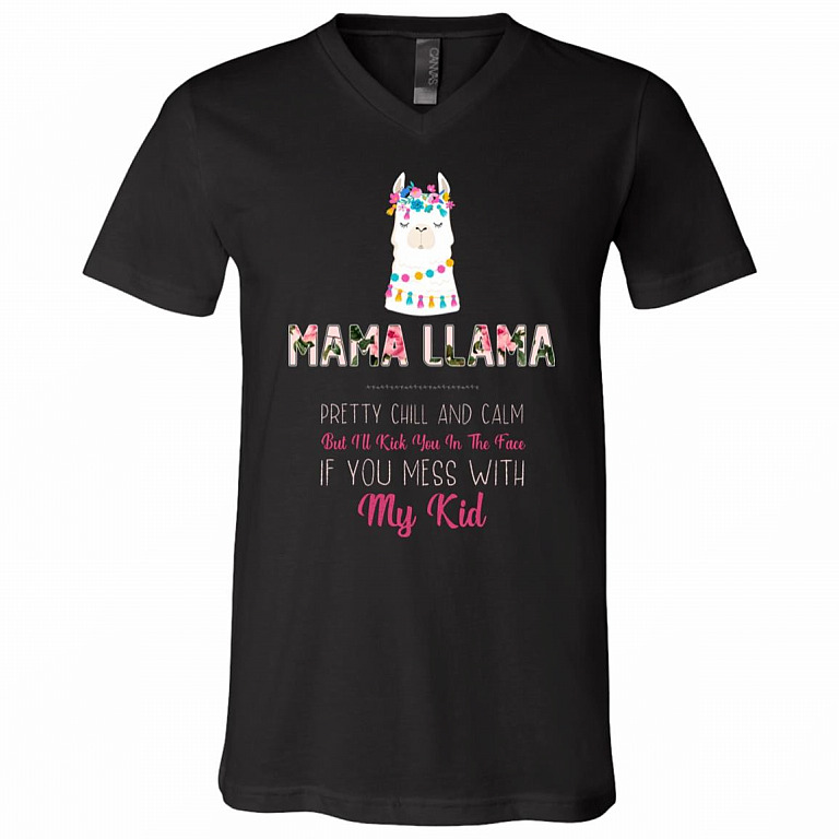 Mama Llama Pretty Chill and Calm But I Will Kick You in The Face If You Mess with My Kid T-Shirt – Funny Llama Shirt