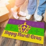 Let’s Shop Happy Mardi Gras Crown Outdoor Indoor Doormat – Mardi Gras Door Mat – Holiday Party Home Decoration!