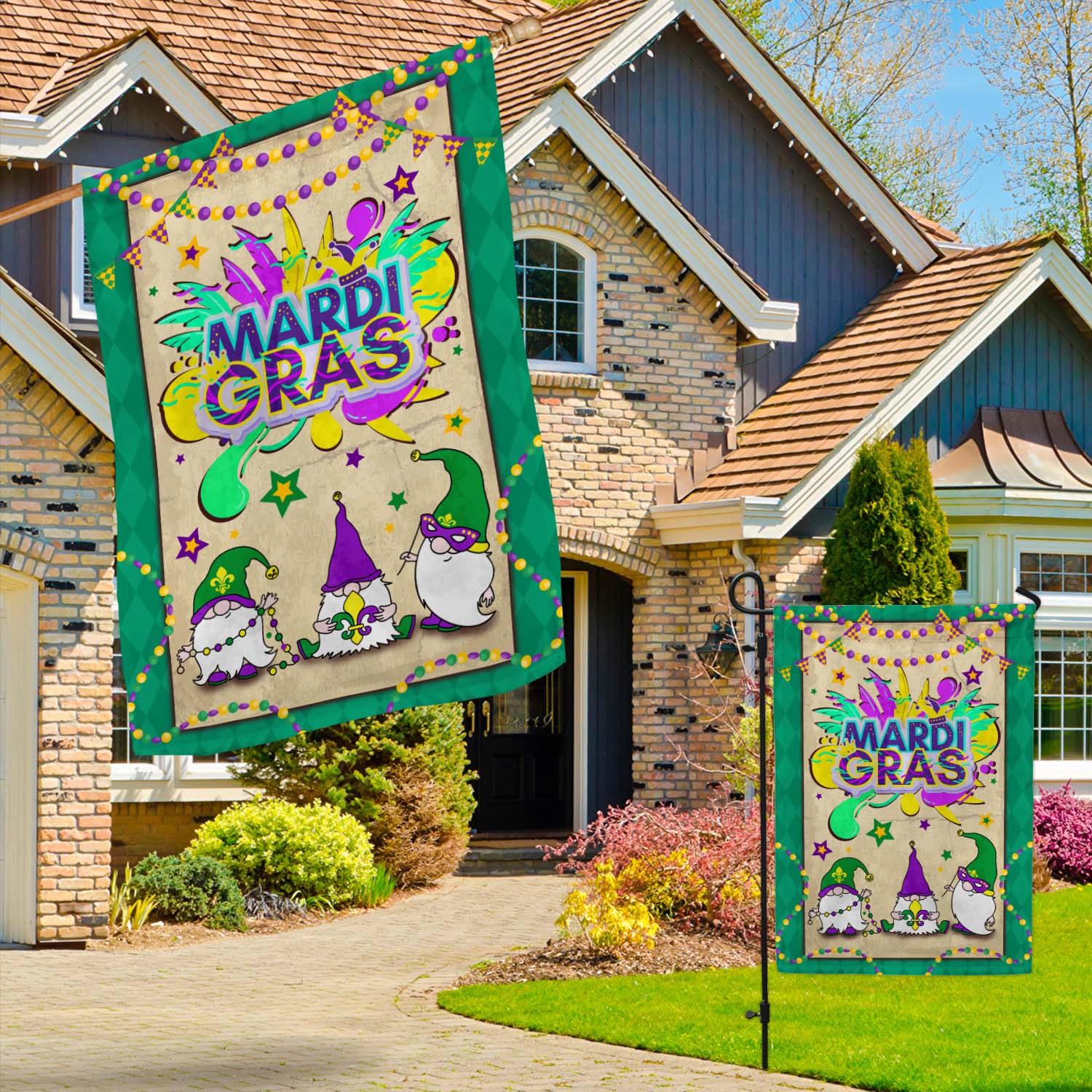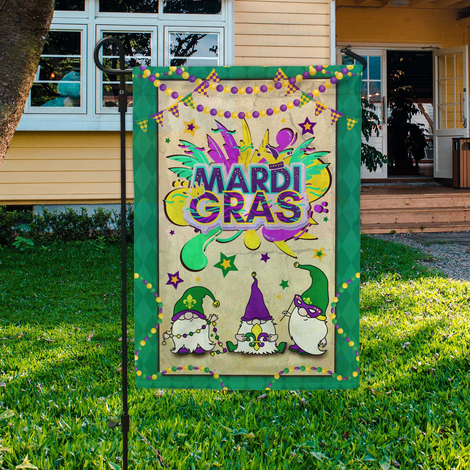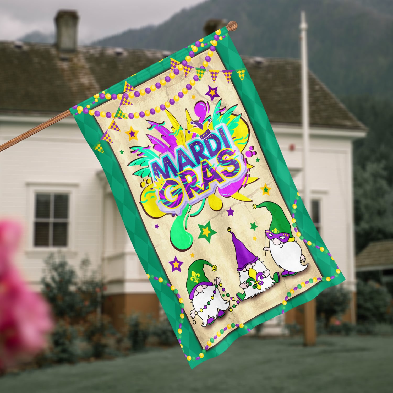 Let’s Shop Mardi Gras Gnome Carnival Holiday Party Outdoor Indoor Decorative Garden Flag – House Flag – Wall Flag!