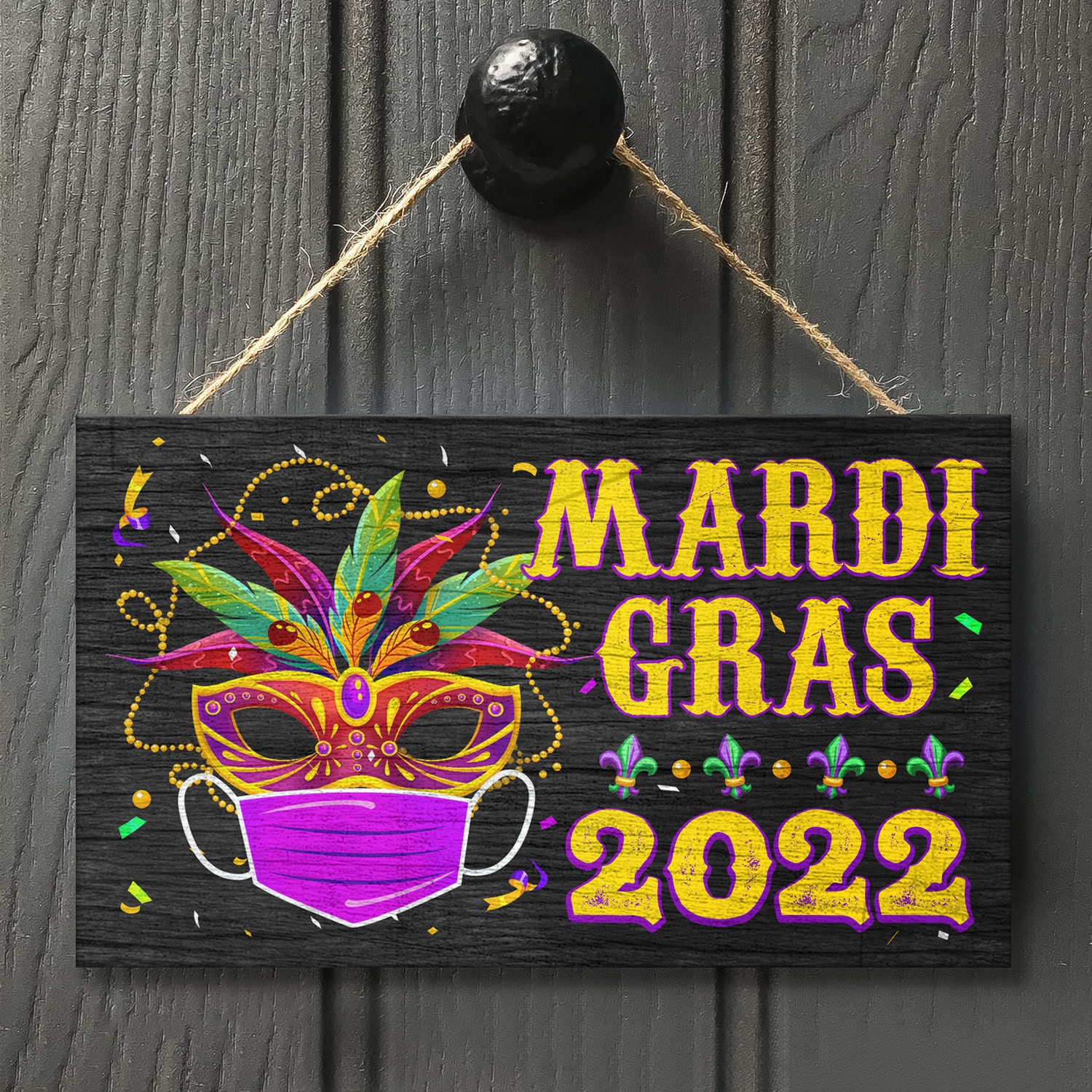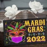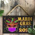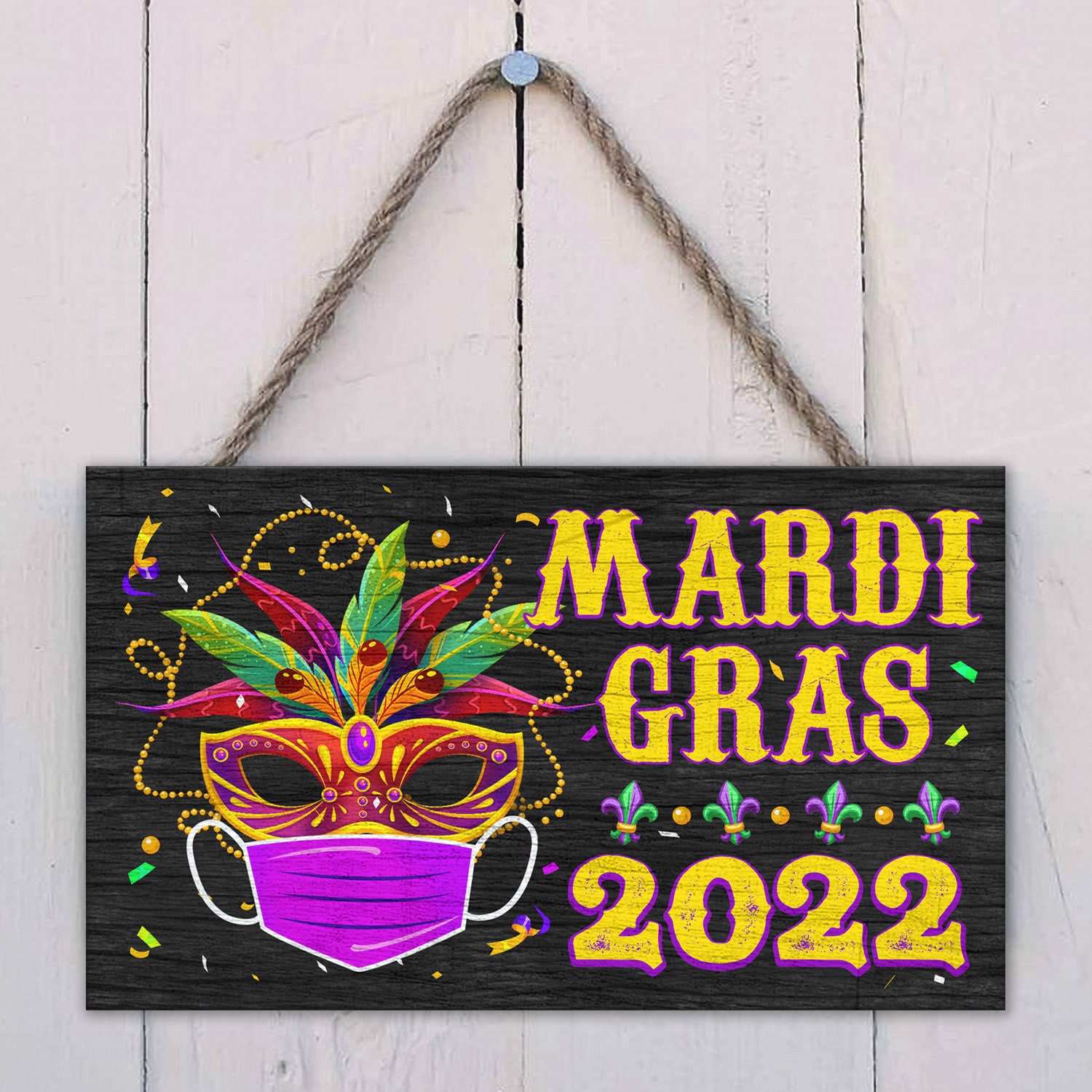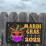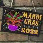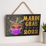 Let’s Shop Happy Mardi Gras Holiday Decorative Rectangle Wooden Door Sign – Front Porch Sign Decor!