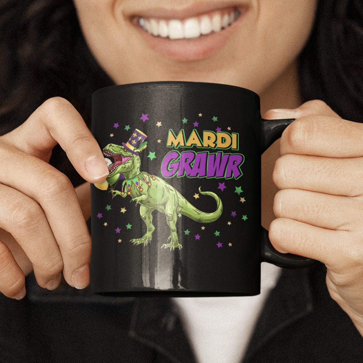 Let’s Shop Mardi Grawr T Rex Dinosaur Mardi Gras Ceramic Coffee Mug – Water Bottle Beer Stein!