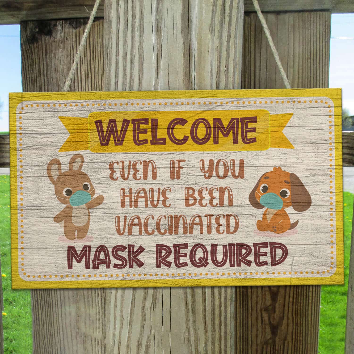 Let’s Shop Welcome Even If You Have Been Vaccinated Mask Required Door Sign – Mask Required Sign!