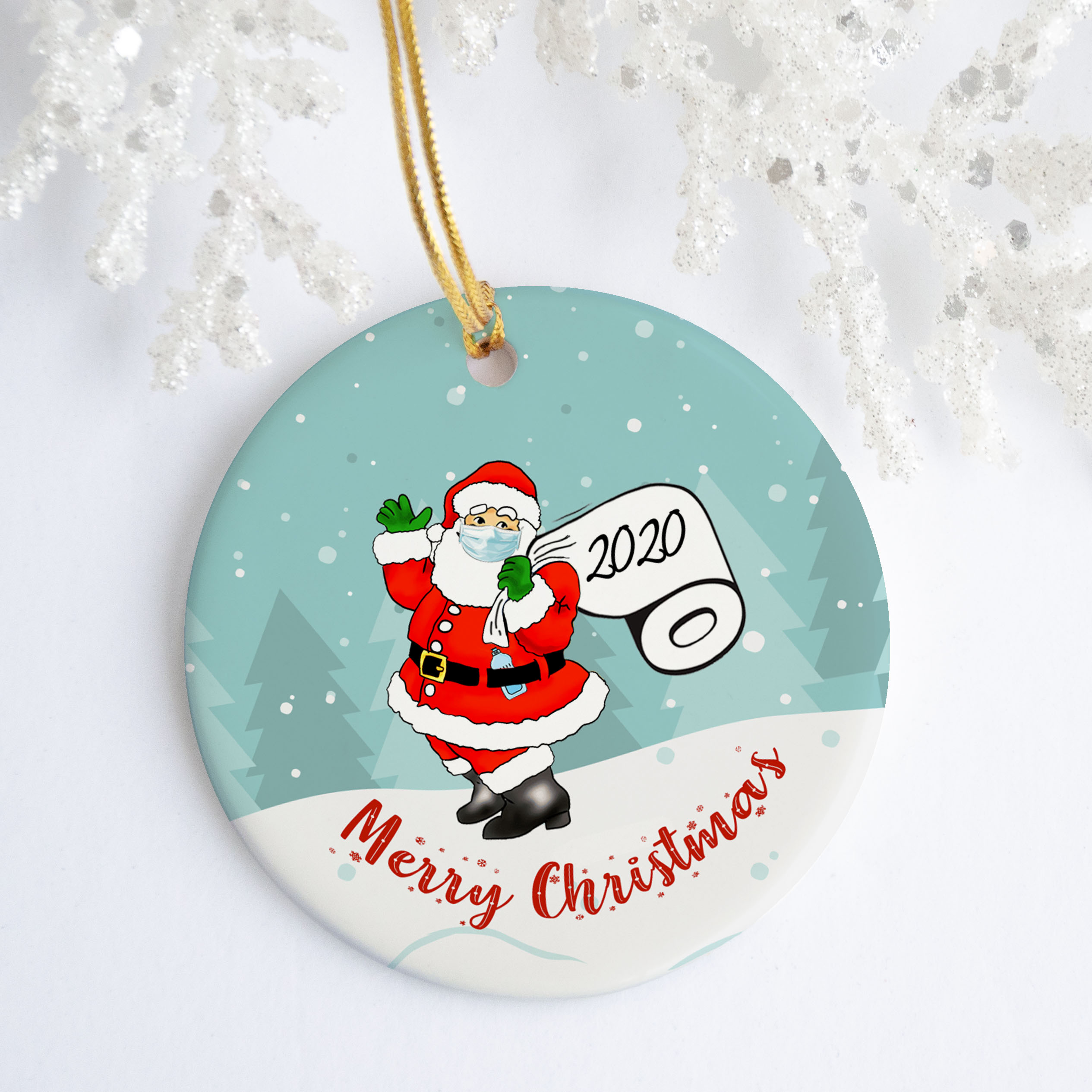 Let’s Shop Santa Claus Wears Mask Toilet Paper Decorative Christmas Ornament – Holiday Flat Circle Ornament!