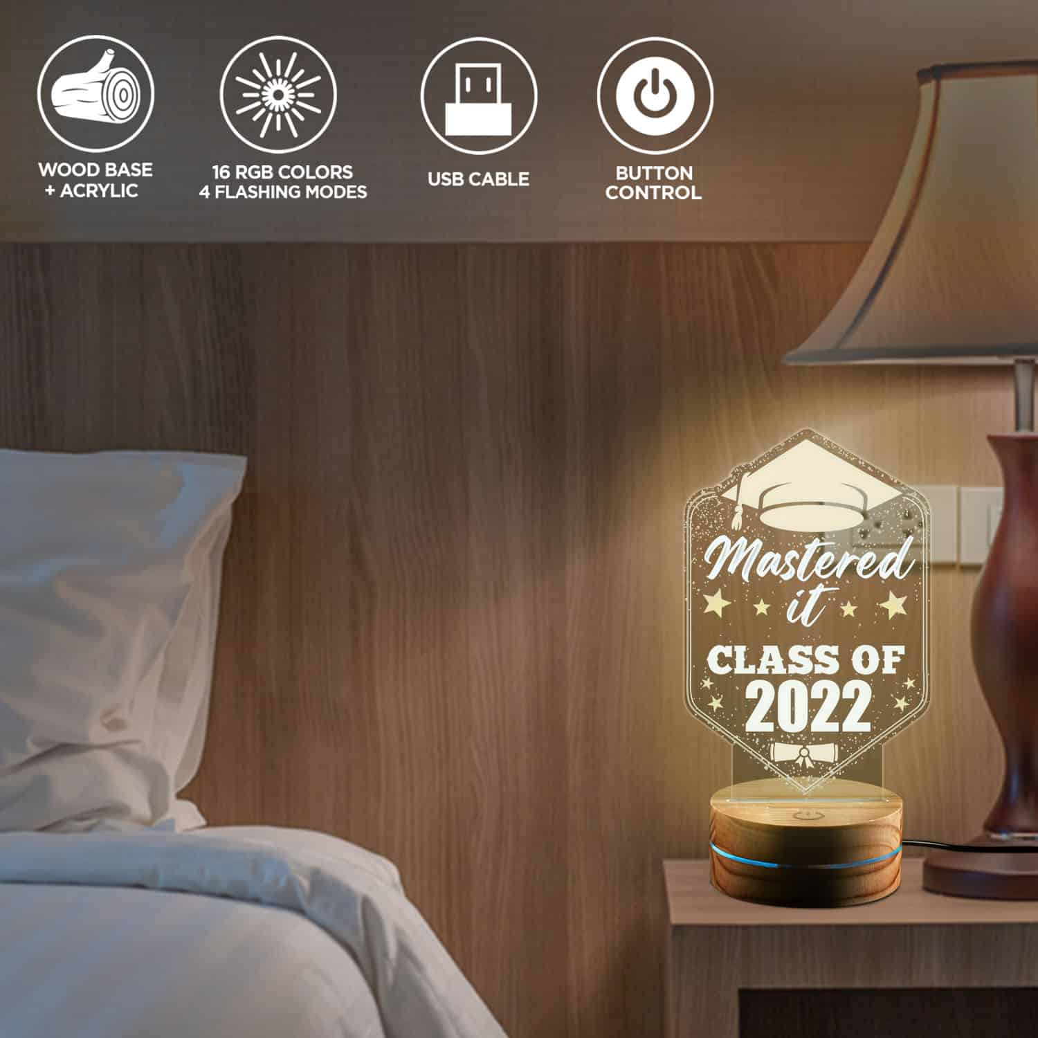 Let’s Shop Mastered It Class Of 2022 Night Light – Custom Grad Gifts Masters LED Light – Graduation Gifts for Her or Him!