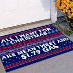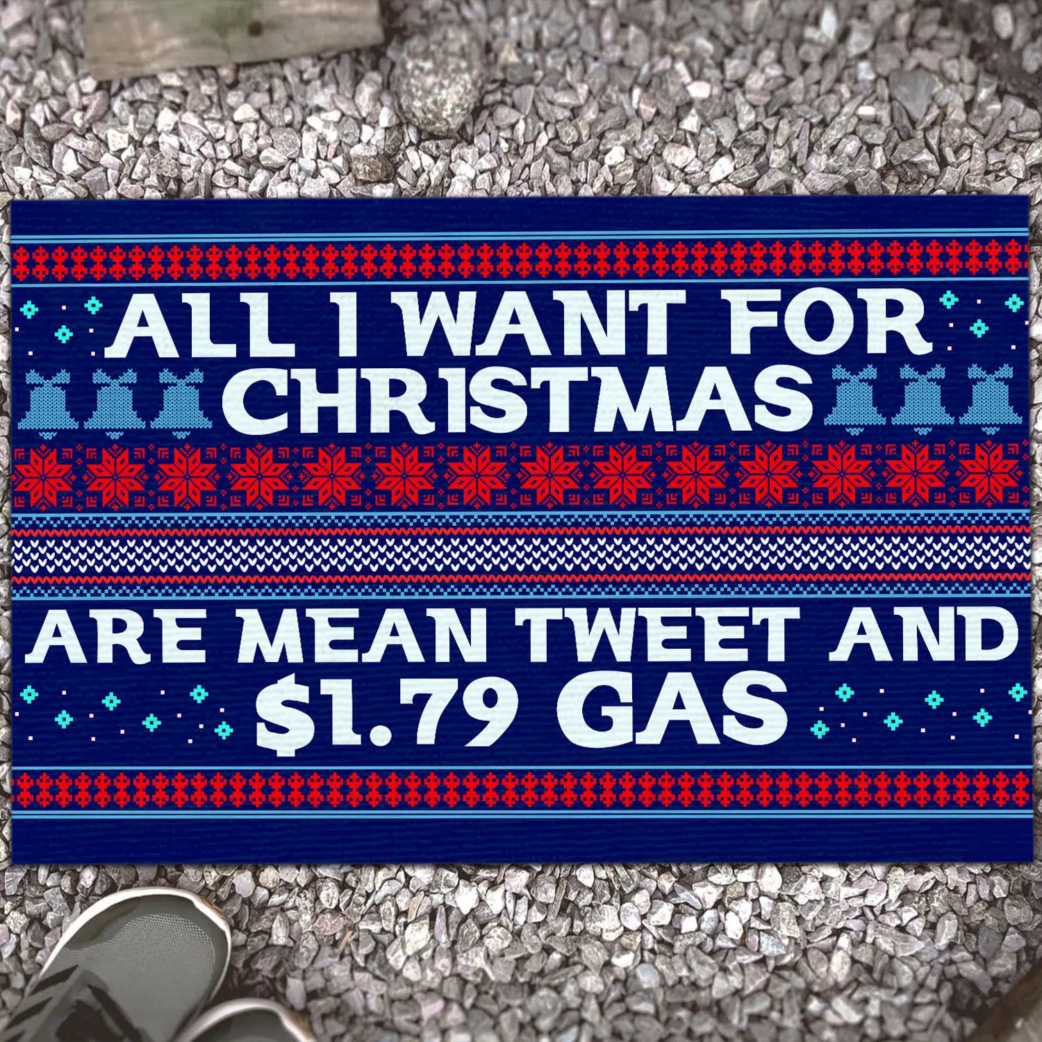 Let’s Shop All I Want For Christmas Are Mean Tweet And $1.79 Gas Funny Political Indoor Outdoor Doormat!