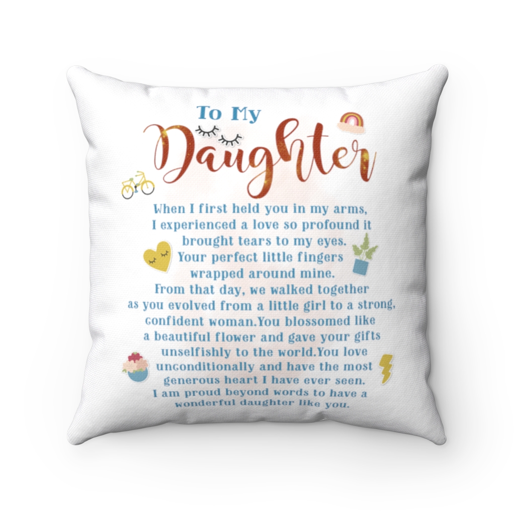 At CubeBik, besides throw pillows, we also offer tees, hoodies, sweaters, raglans, tanks, wall arts, canvases, posters, mugs, blankets, engraved jewelry, personalized necklaces, printed face masks, tote bags, hats, accessories and more on our website, so do not miss our other The Love Between a Mother and Daughter Knows No Distance, Remember I Love You Mom, God Sent Me You, Never Forget That I Love You, the Love Between a Mother and Daughter Is Forever, Believe in Yourself, I Believe in You Quotes, Always by Yourside, Ten Little Fingers Ten Perfect Toes, Held You in My Arms, Brought Tears to My Eyes, Wrapped Around Your Finger, Grow Up Little Girl, Mother Daughter Pillow, Sentimental Gifts for Daughter from Mom, Mother Daughter Gift Ideas, to My Daughter related merchandise. Moreover, all the products are made-to-order and one of a kind custom designs you can’t get elsewhere in normal stores. Let’s discover CubeBik.com now and find your favorite personalized items. We can’t wait to surprise and build beautiful memories with you and your loved ones.