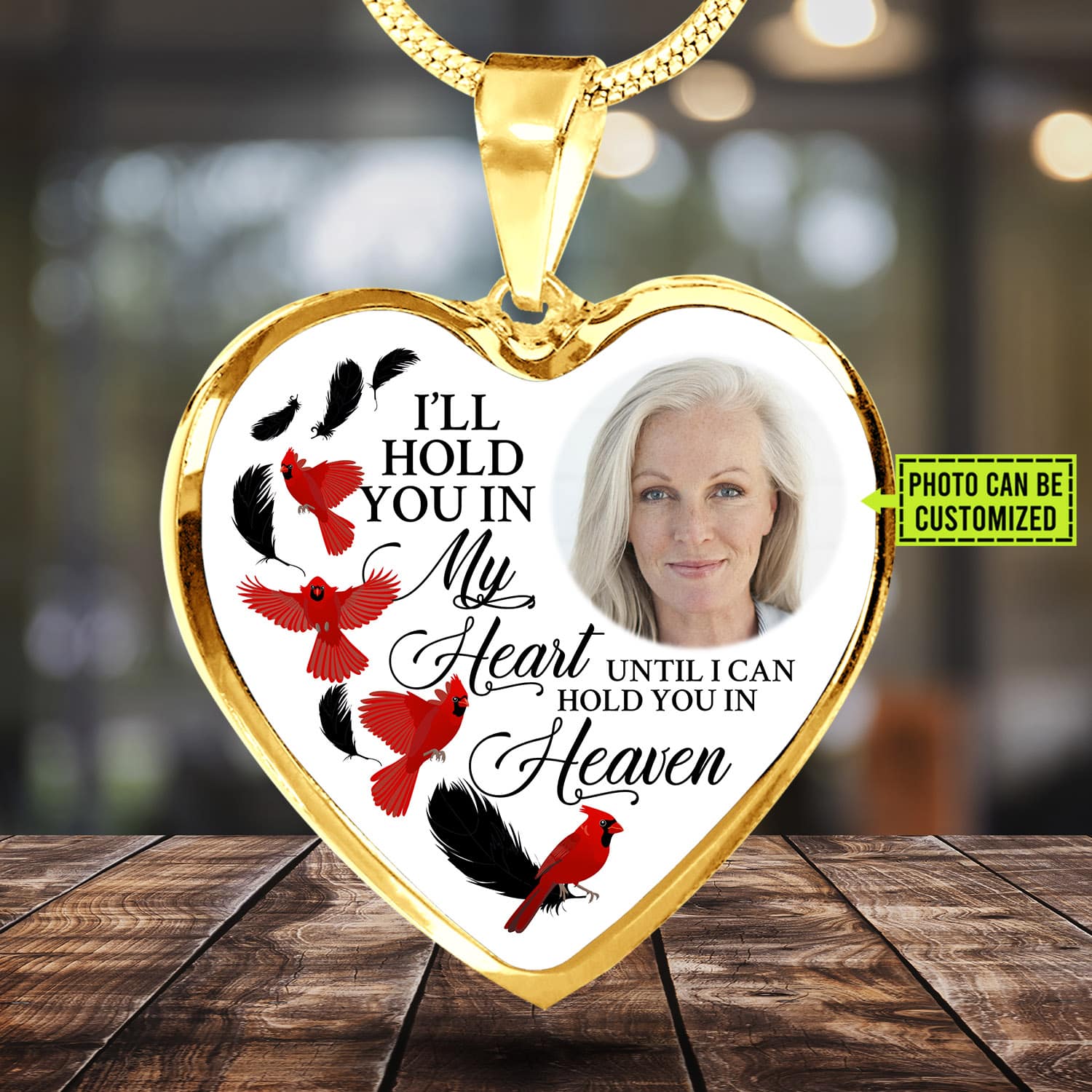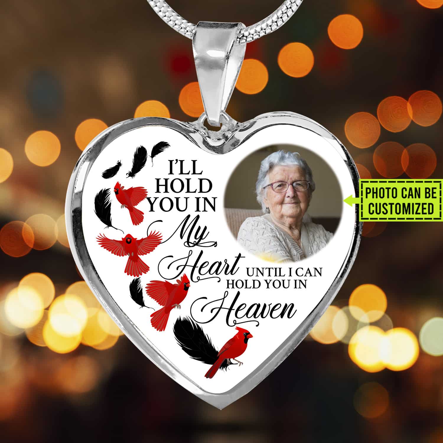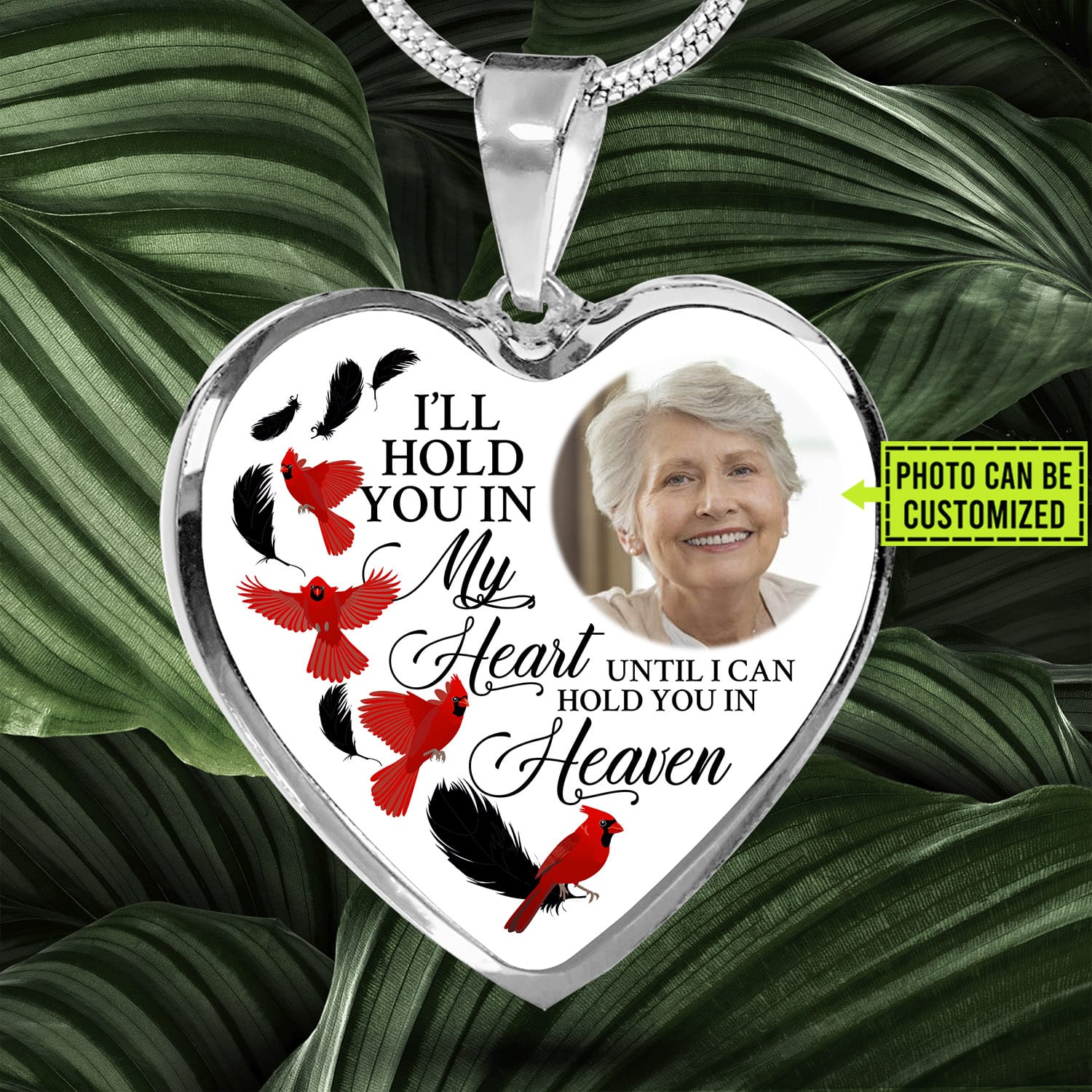Let’s Shop Custom Photo Memorial Cardinal Heart Necklace – I’ll Hold You in My Heart Personalized Photo Engraving Memorial Heart Necklace!