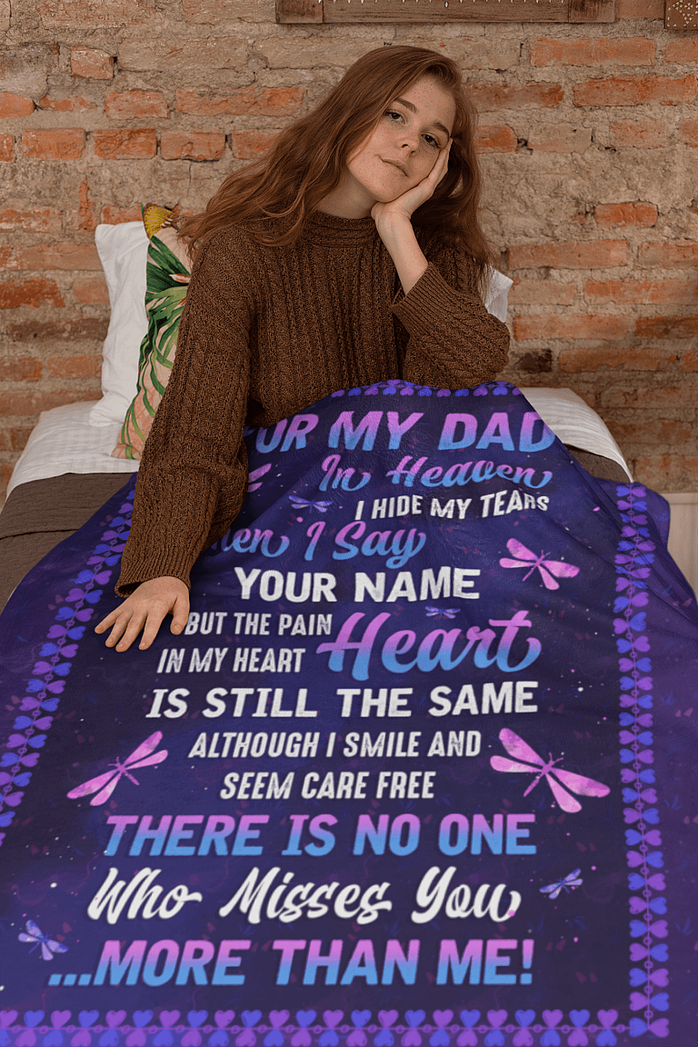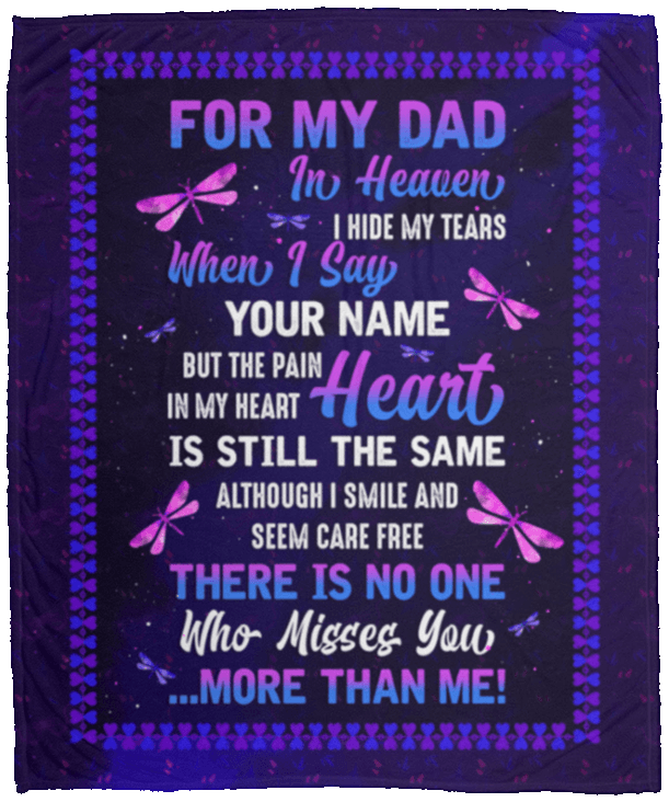 For My Dad In Heaven I Hide My Tears When I Say Your Name Dragonfly Fleece Blanket – Sherpa Blanket