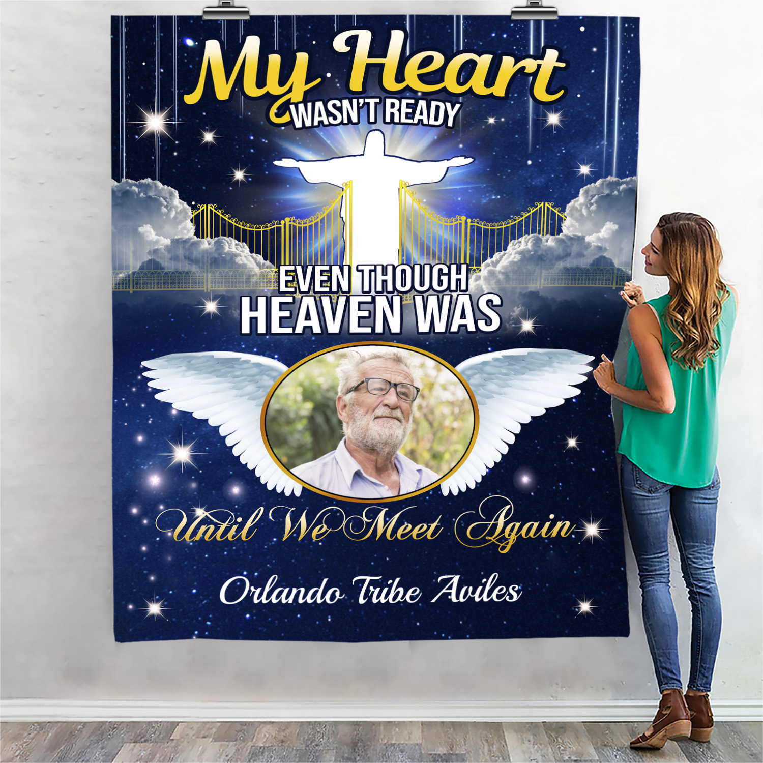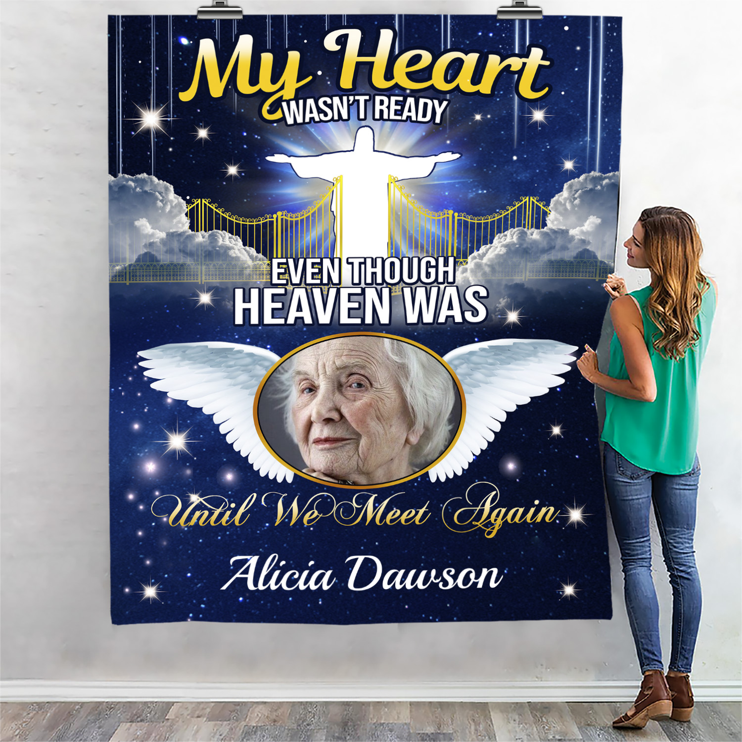 Let’s Shop My Heart Wasn’t Ready Personalized Photo Name Memorial Blanket – Angel Wings Custom Image With Name Blanket!