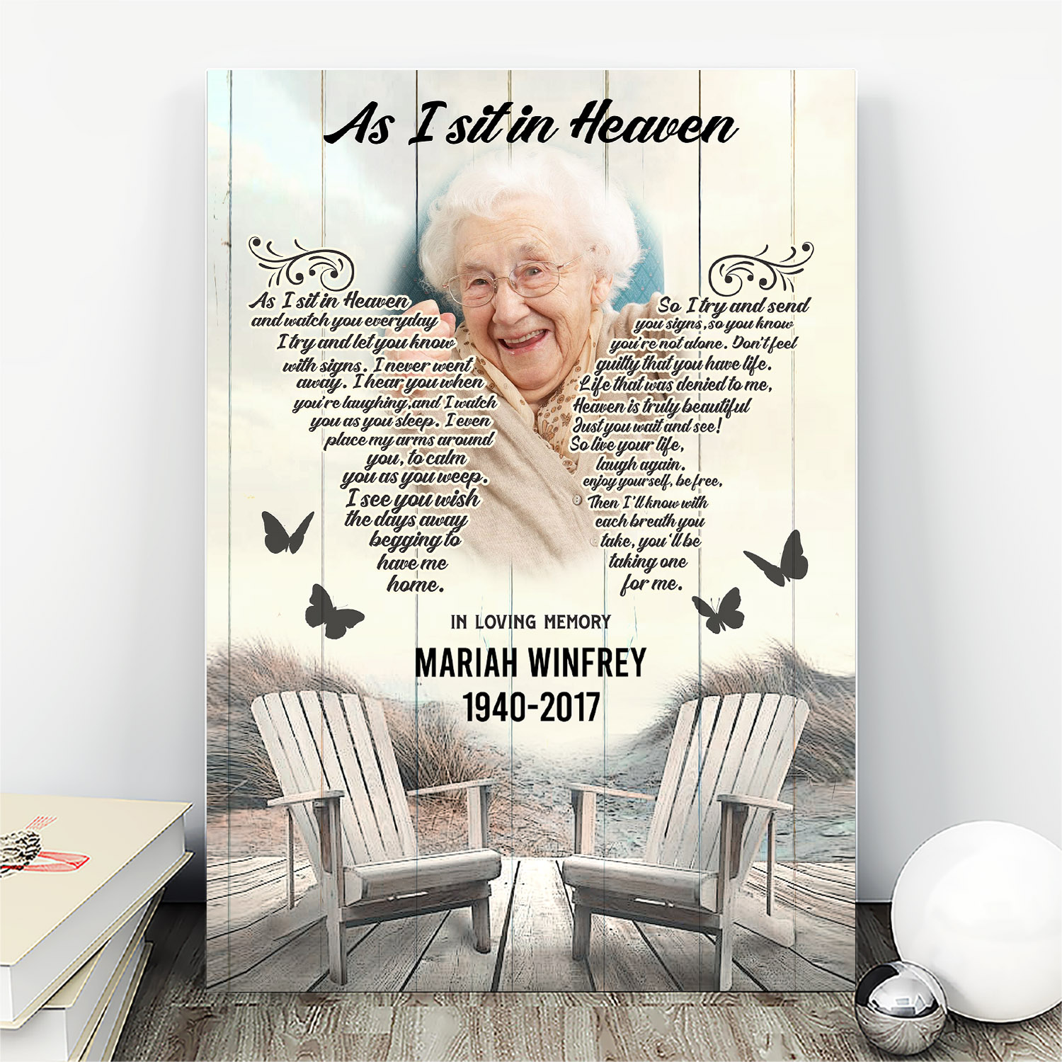 Let’s Shop As I Sit In Heaven Memorial Personalized Photo Name Gallery Wrapped Framed Canvas Prints – Unframed Poster!