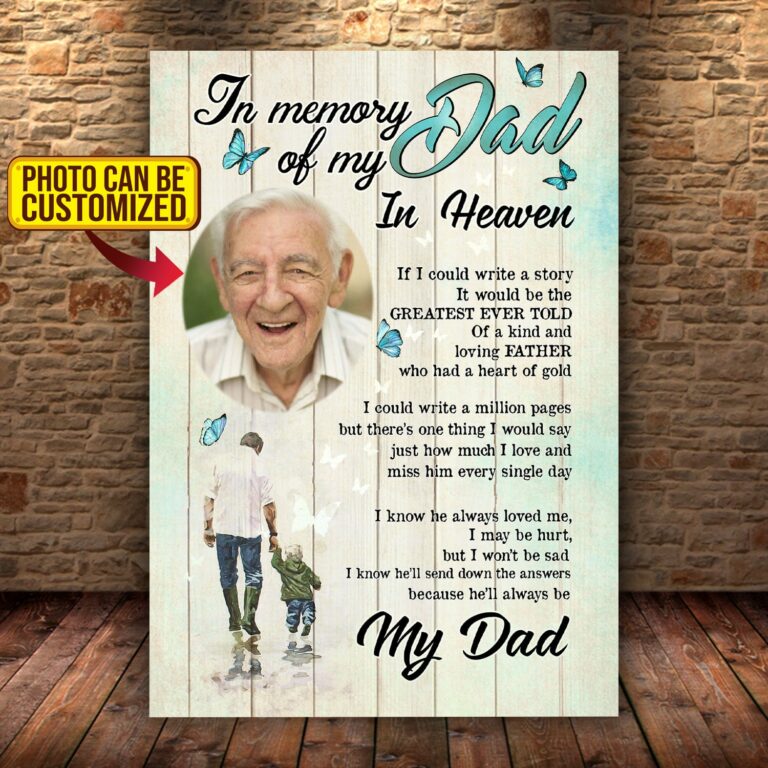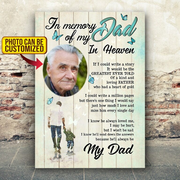 Let’s Shop Personalized Photo In Memory Of My Dad In Heaven Framed Canvas – Unframed Poster – Memorial Dad Wall Art!