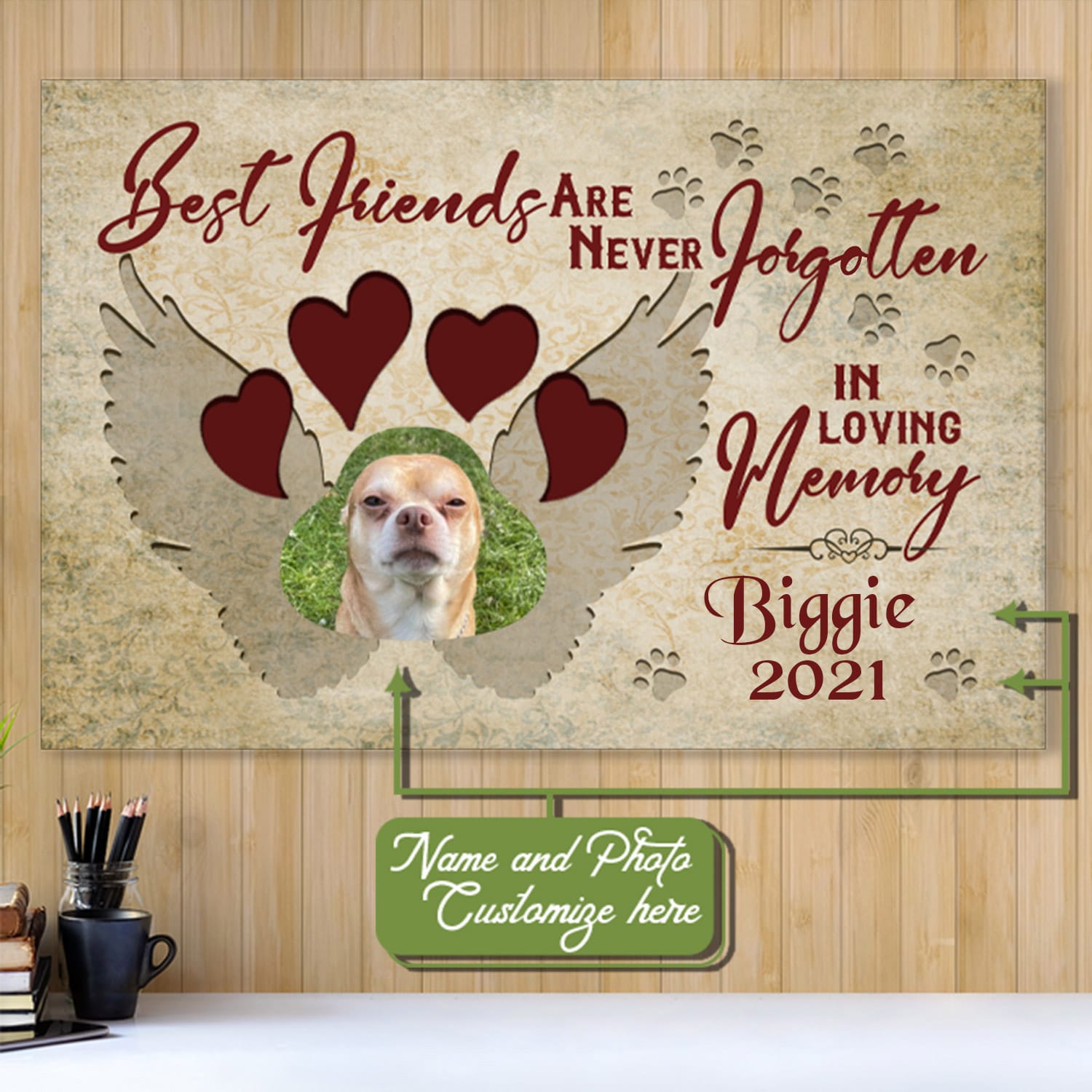 Let’s Shop Personalized Photo Best Friends Are Never Forgotten In Memory Of Dog Pet Remembrance Canvas Poster Wall Art!