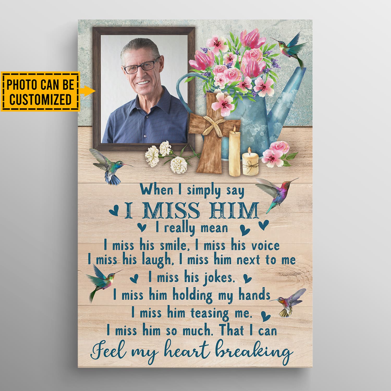 Let’s Shop Personalized Photo When I Simply Say I Miss Him Husband Memorial Hummingbirds Framed Canvas Prints – Unframed Poster!