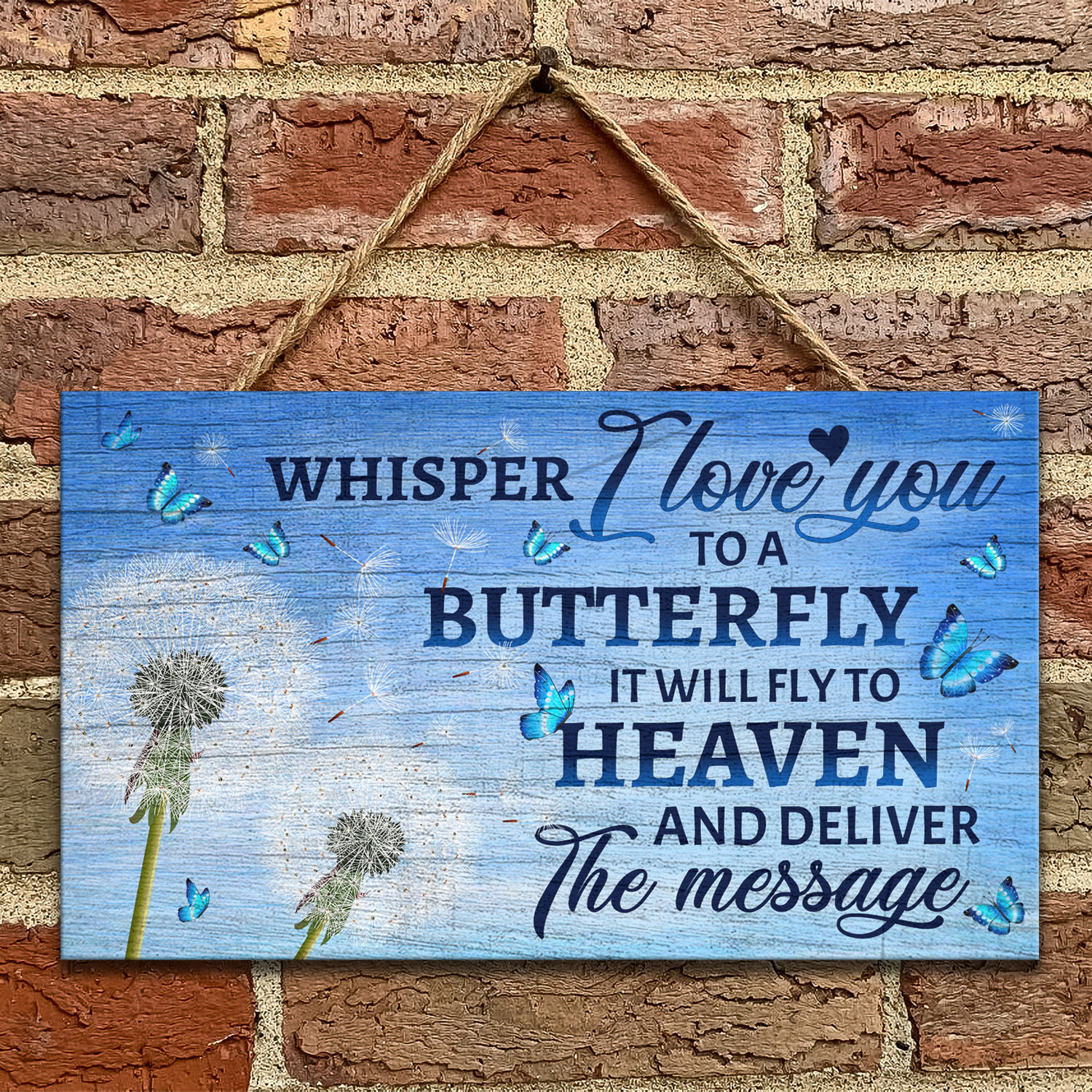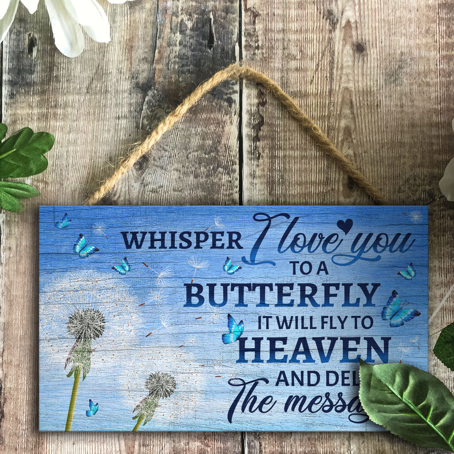 Let’s Shop Whisper I Love You to A Butterfly and It Will Fly to Heaven and Deliver the Message Decorative Rectangle Wooden Door Sign – Front Porch Sign!