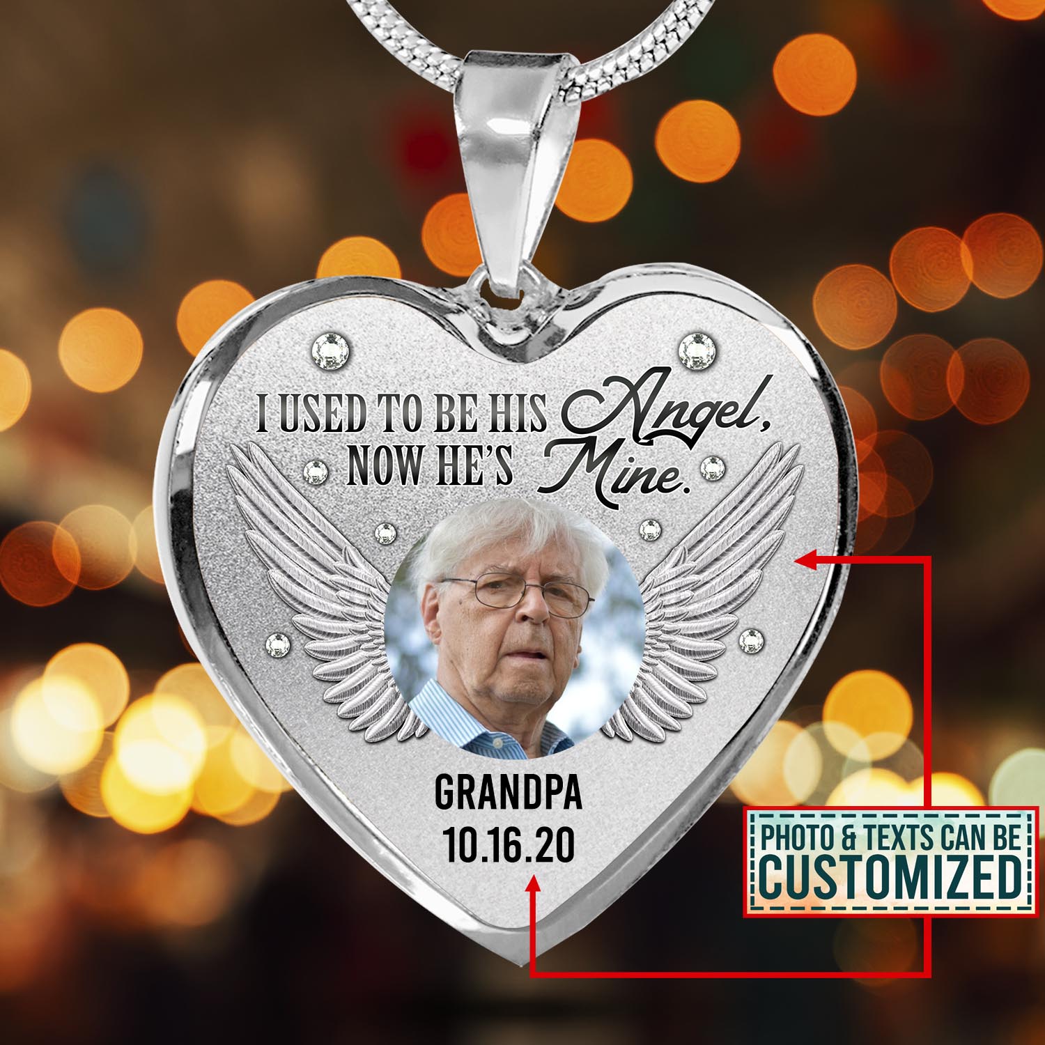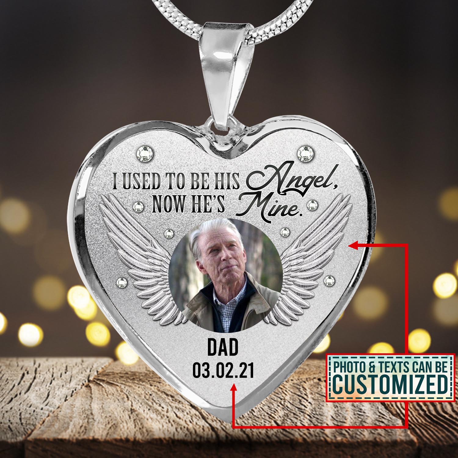 Let’s Shop Personalized Custom Photo I Used To Be His Angel Now He’s Mine Dad Memorial Heart Necklace – Bangle!