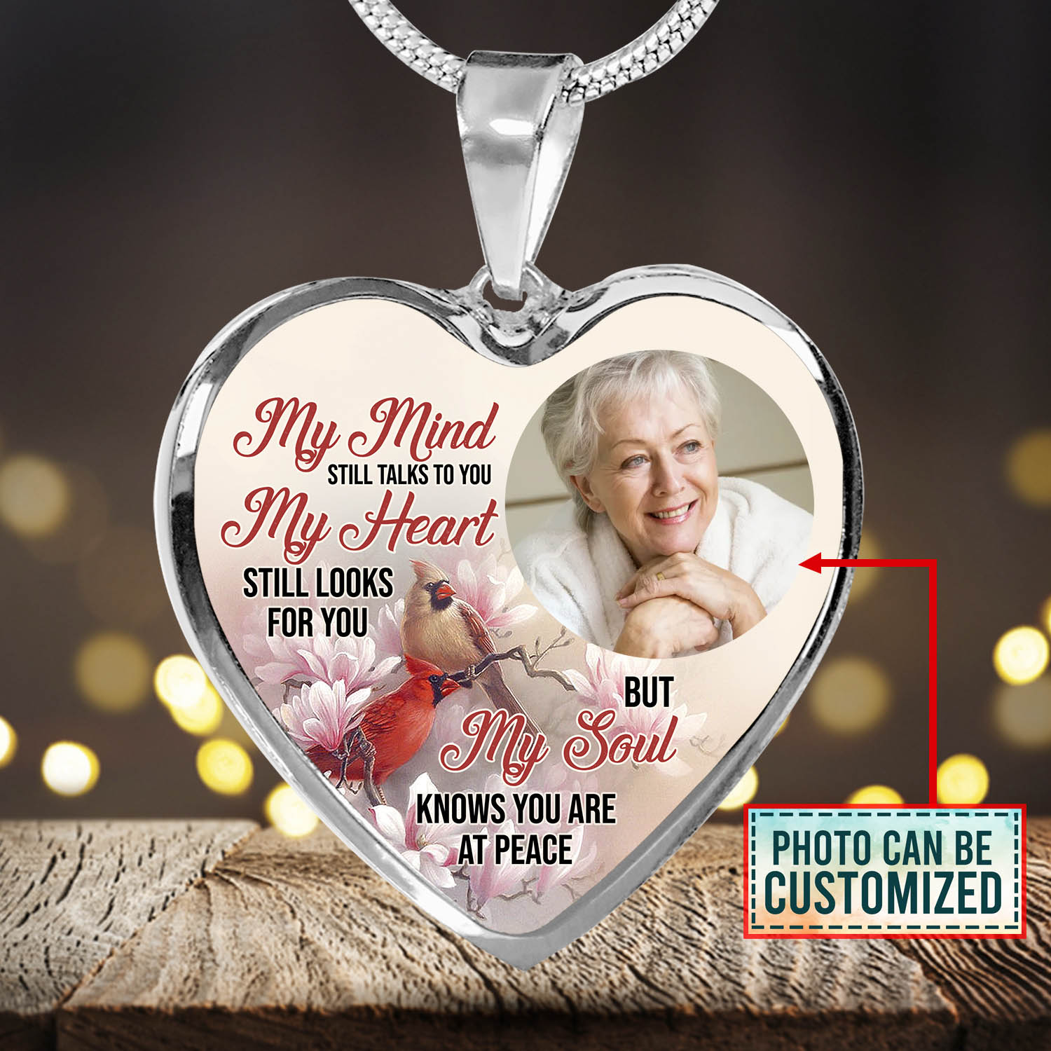 Let’s Shop Personalized Photo My Mind Still Talks to You Memorial Cardinal Heart Pendant Necklace – Bangle!