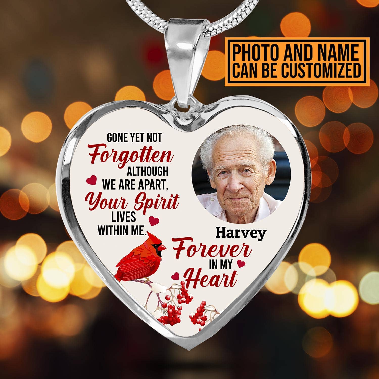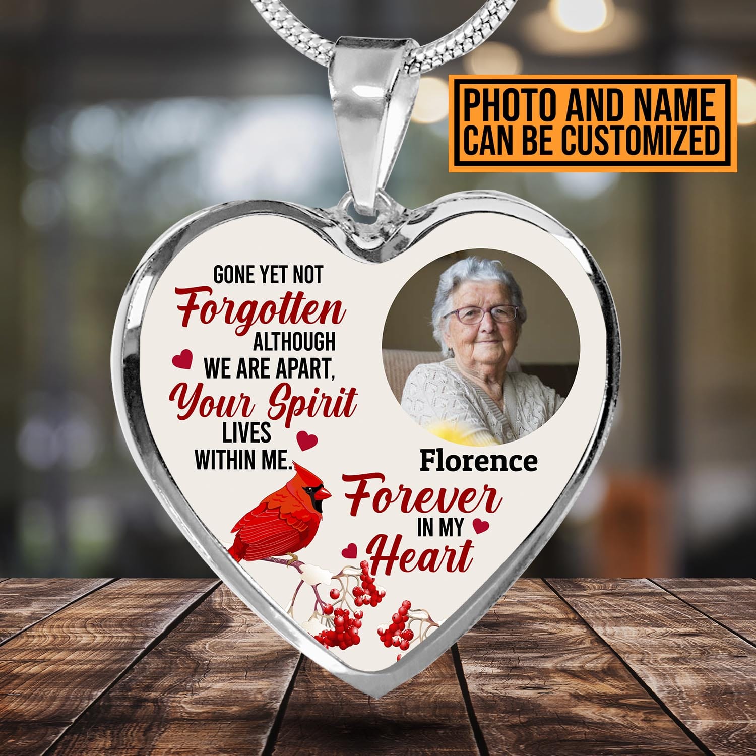 Let’s Shop Custom Photo Gone Yet Not Forgotten Cardinal Memorial Heart Pendant Necklace – Bangle – Personalized Memorial Gifts!