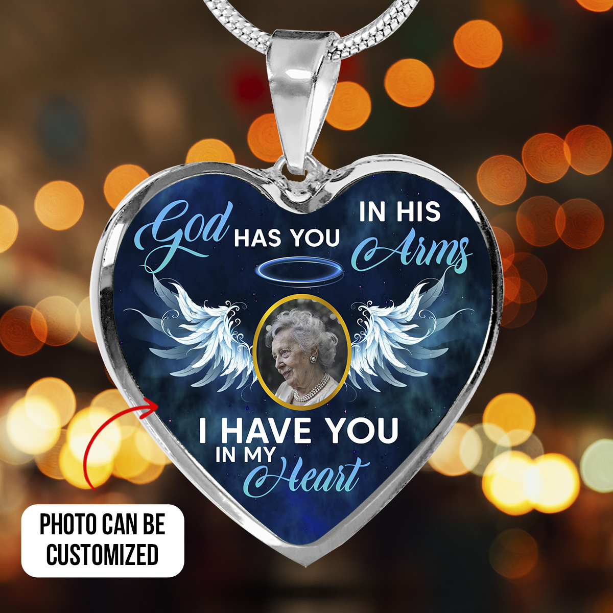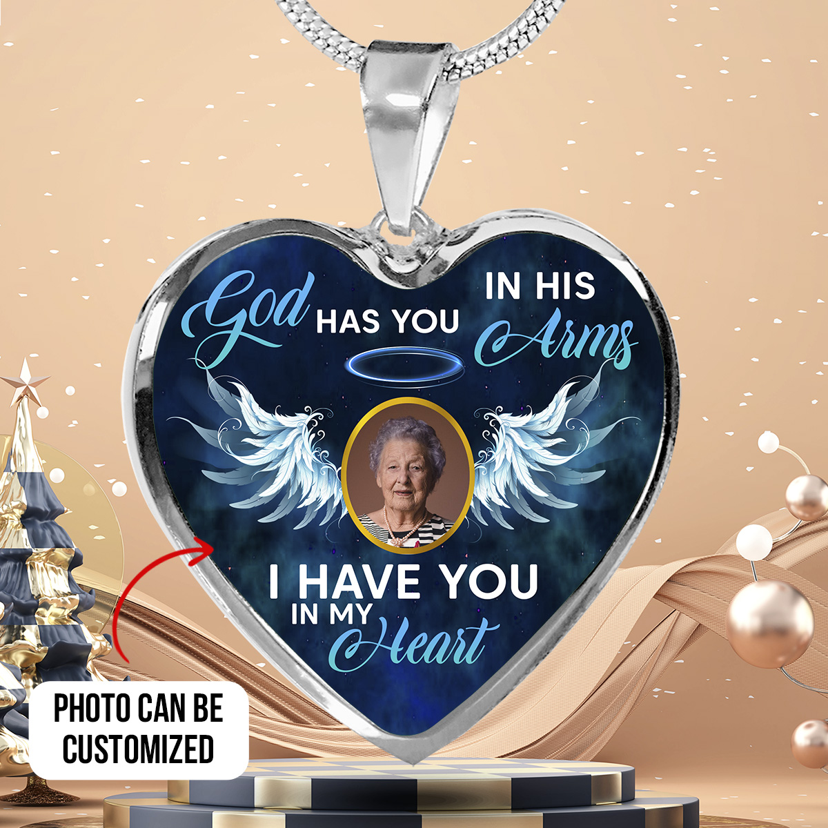 Let’s Shop Personalized Custom Photo Memorial God Has You In His Arms I Have You In My Heart Heart Necklace – Bangle!