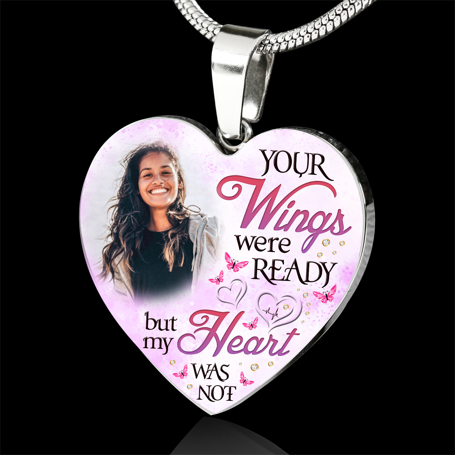 Let’s Shop Personalized Photo Your Wings Were Ready But My Heart Was Not Heart Pendant Necklace – Bangle!