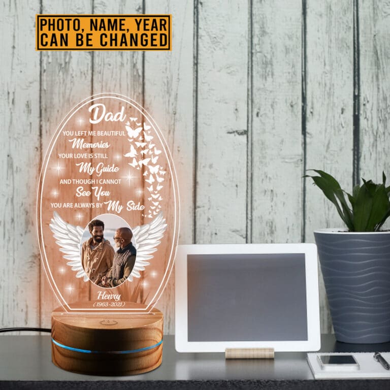Let’s Shop Personalized Photo Memorial Gifts Dad You Left Me Beautiful Memories Butterfly Led Night Light Multi Color – Bedroom Decor!