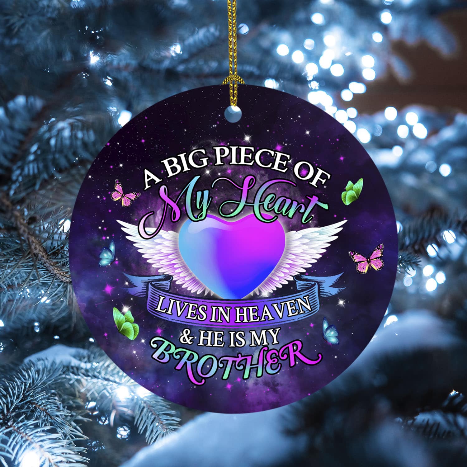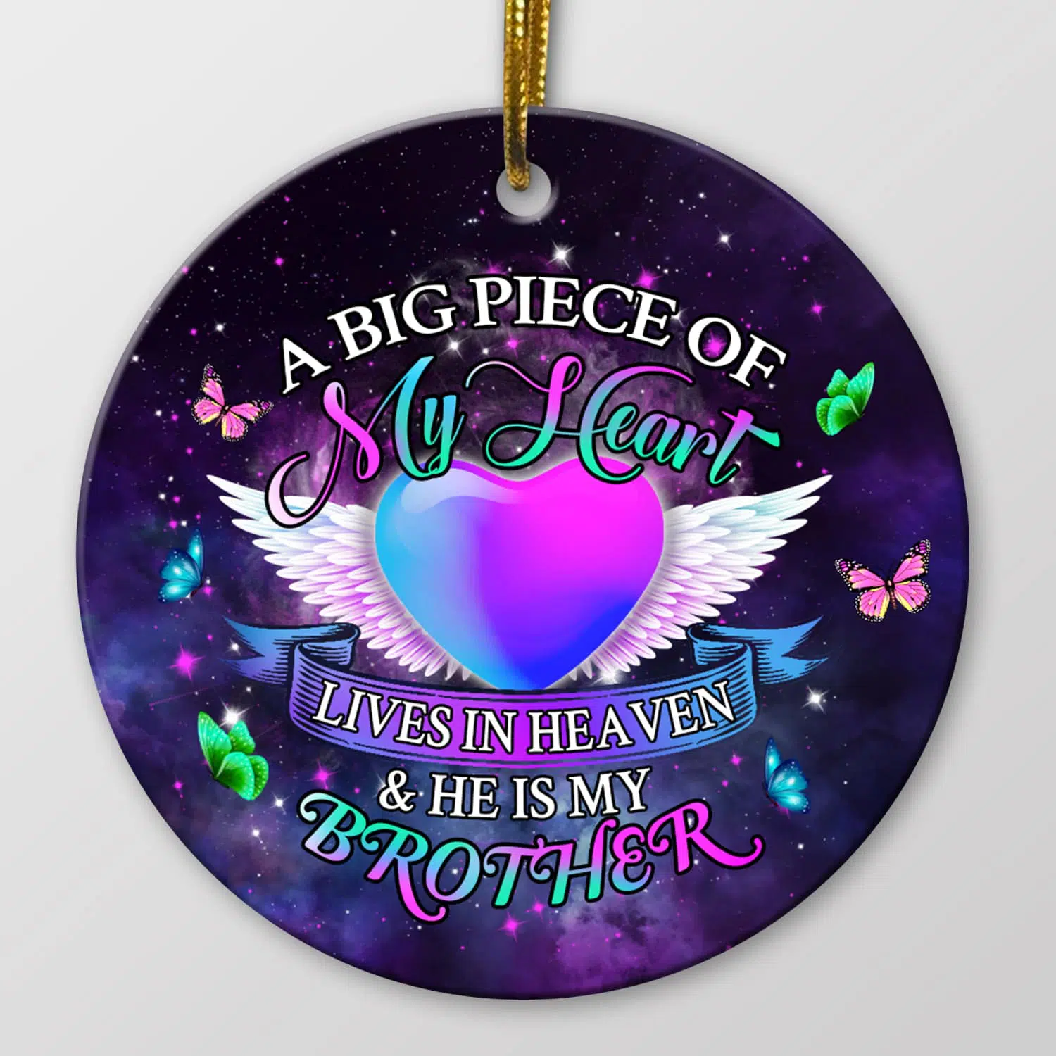 Let’s Shop A Big Piece In My Heart Lives In Heaven He Is My Brother Memorial Circle Ornament – Loss Of Brother Ornament!
