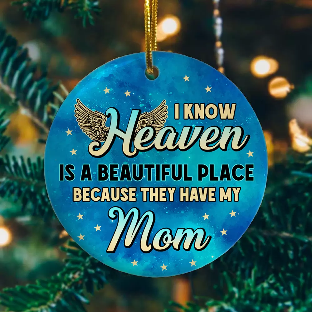 Let’s Shop I Know Heaven Is a Beautiful Place Because They’ve Got Mom Christmas Ornament Keepsake – Flat Circle Ornament!