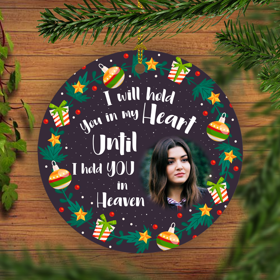 Let’s Shop Custom Photo I Will Hold You In My Heart Decorative Christmas Ornament – Memorial Flat Circle Ornament!