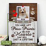 Let’s Shop Personalized Photo You Have Left Paw Prints On Our Hearts Framed Canvas – Unframed Poster – Pet Memorial Home Decor!