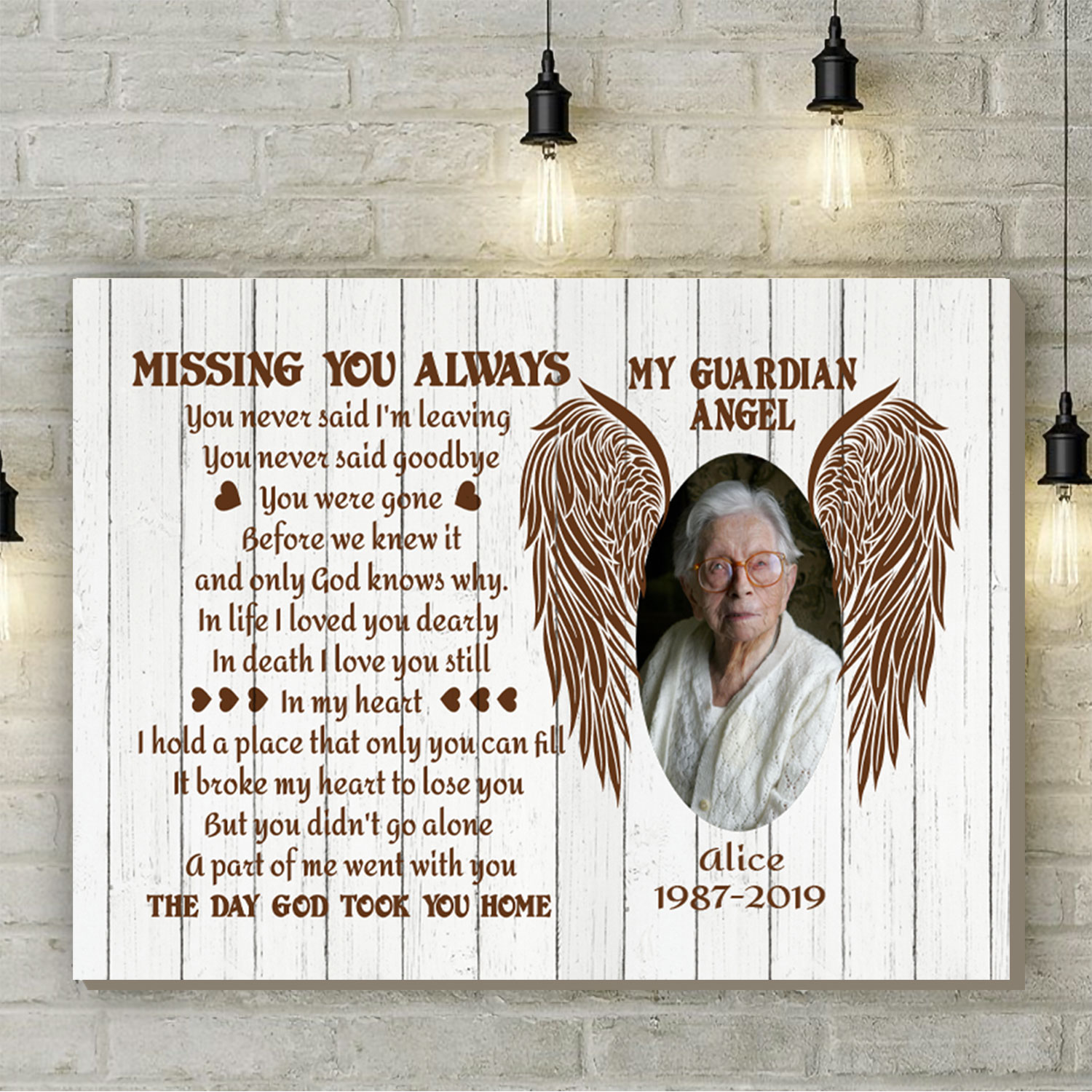 Let’s Shop Personalized Custom Photo Missing You Always Never Said I’m Leaving Memorial Framed Canvas – Unframed Poster!