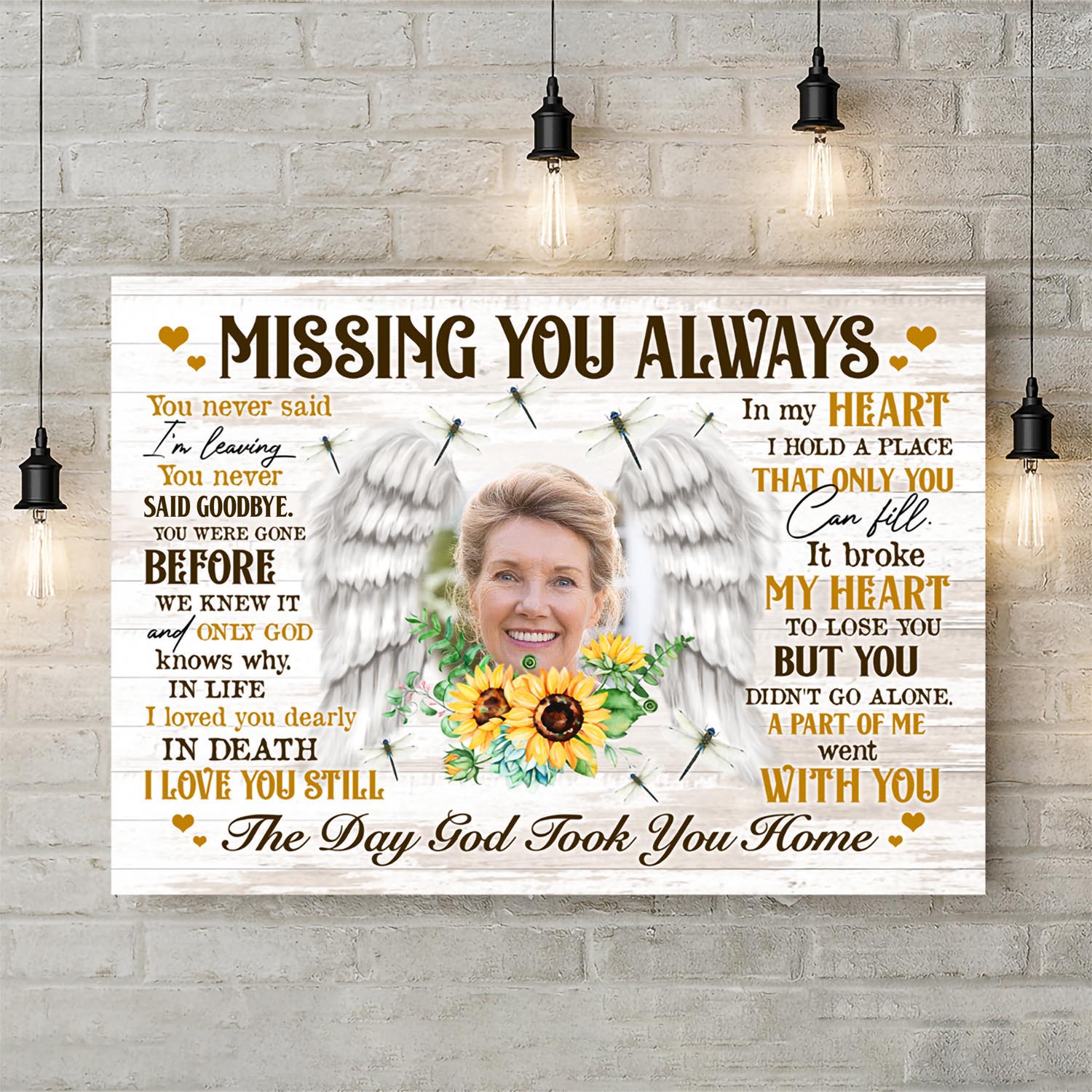 Let’s Shop Personalized Photo Missing You Always You Never Said I’m Leaving You Never Said Goodbye Memorial Framed Canvas!