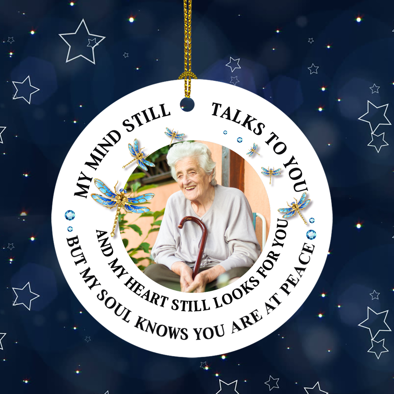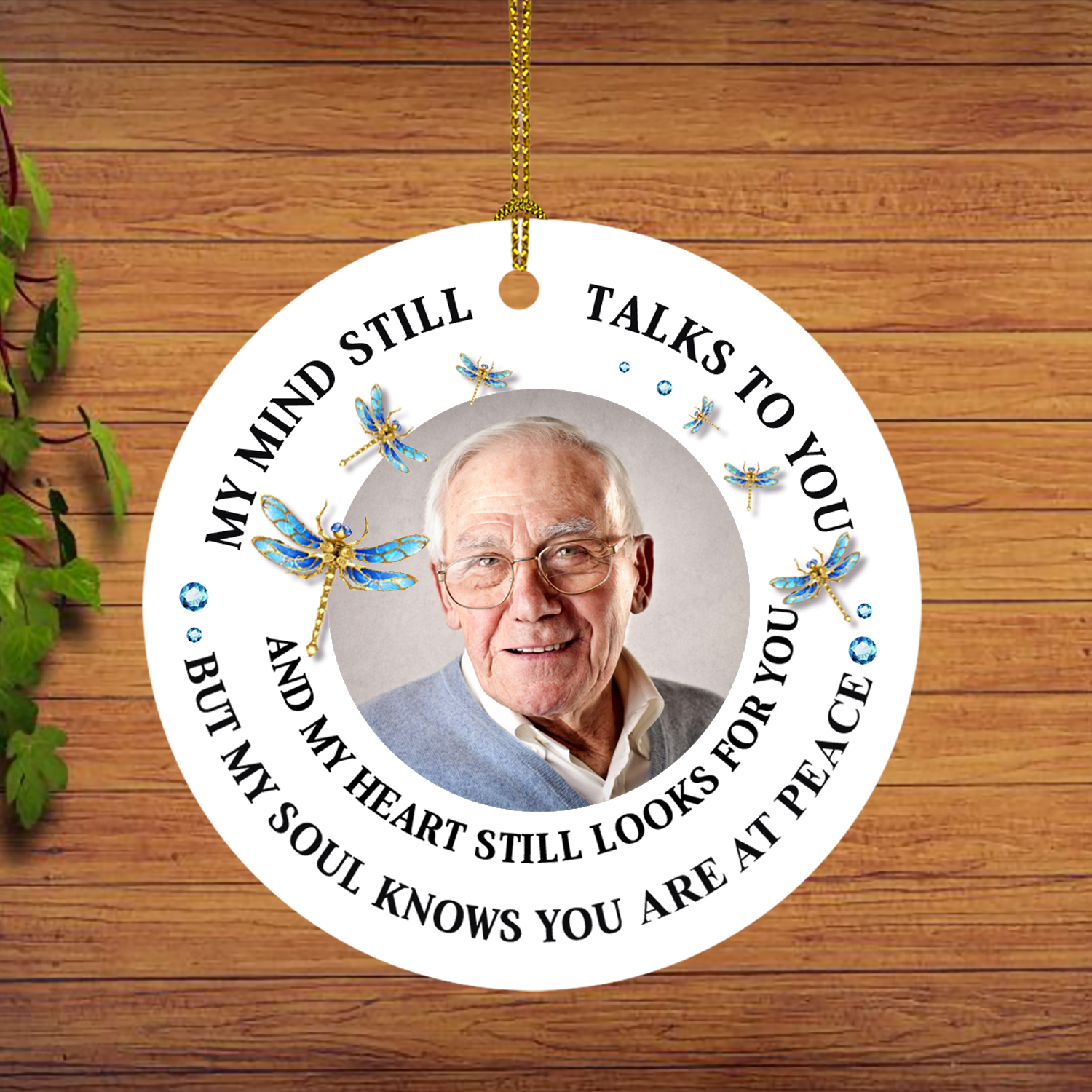 Let’s Shop Personalized Custom Photo Dragonfly My Mind Still Talks To You Circle Ornament – Dragonfly Memorial Ornament!