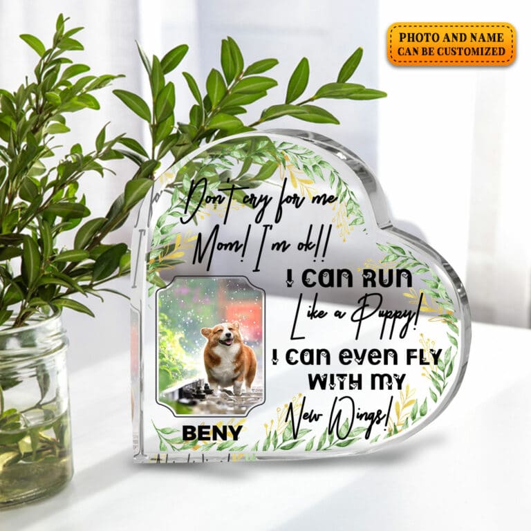 Let’s Shop Personalized Photo Don’t Cry For Me Mom I Can Run Like A Puppy Dog Memorial Heart Acrylic Plaque!