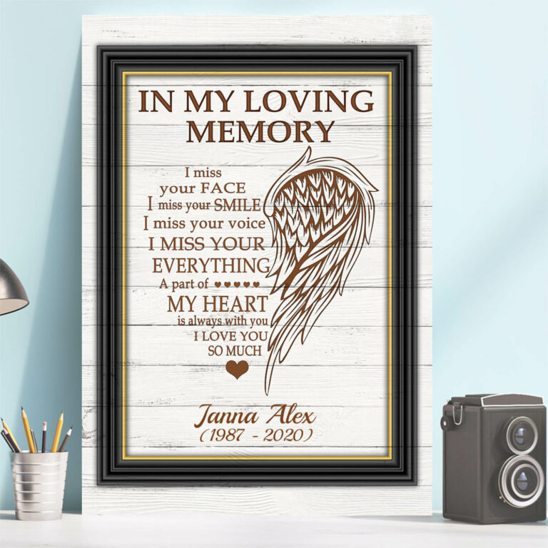 Let’s Shop Personalized In My Loving Memory Framed Canvas – I Miss Your Face I Miss Your Smile Unframed Poster!