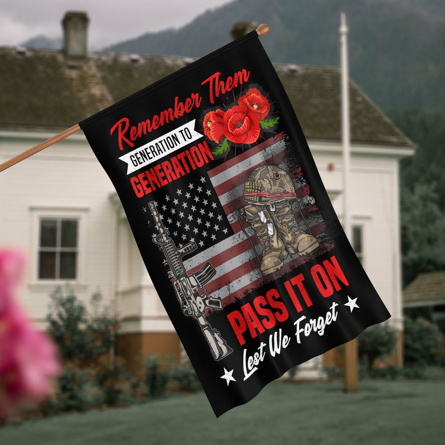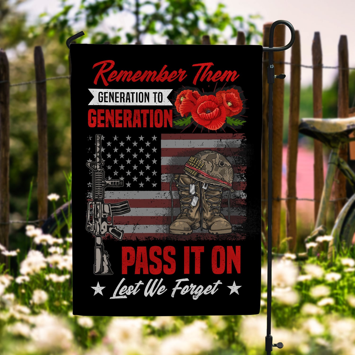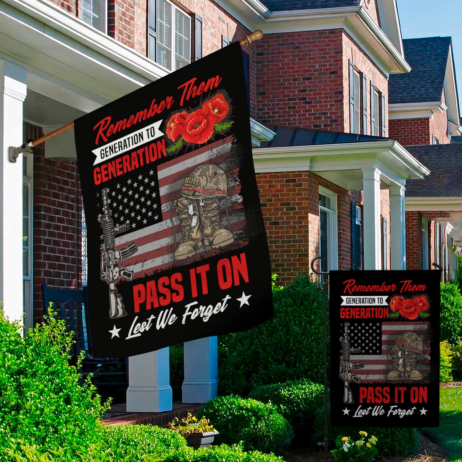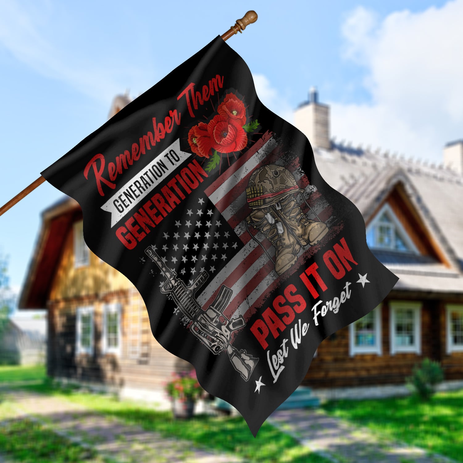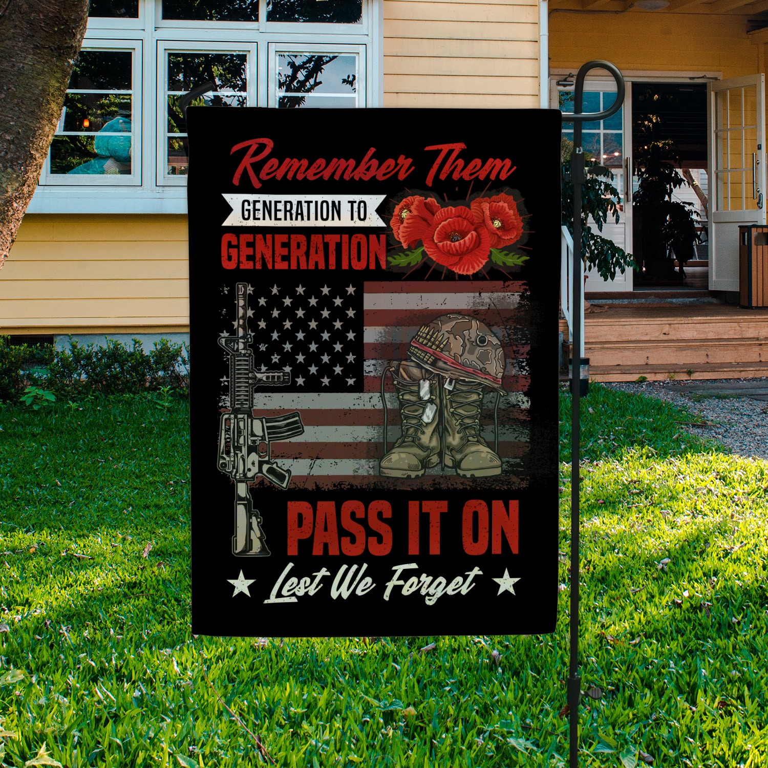 Let’s Shop Remember Them Generation To Generation Pass It On Let We Forget Memorial American Veteran Outdoor Indoor Decorative Garden Flag – House Flag!
