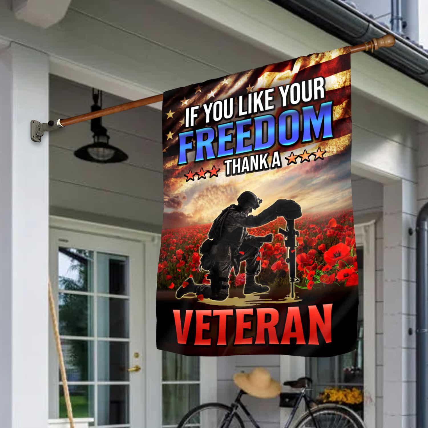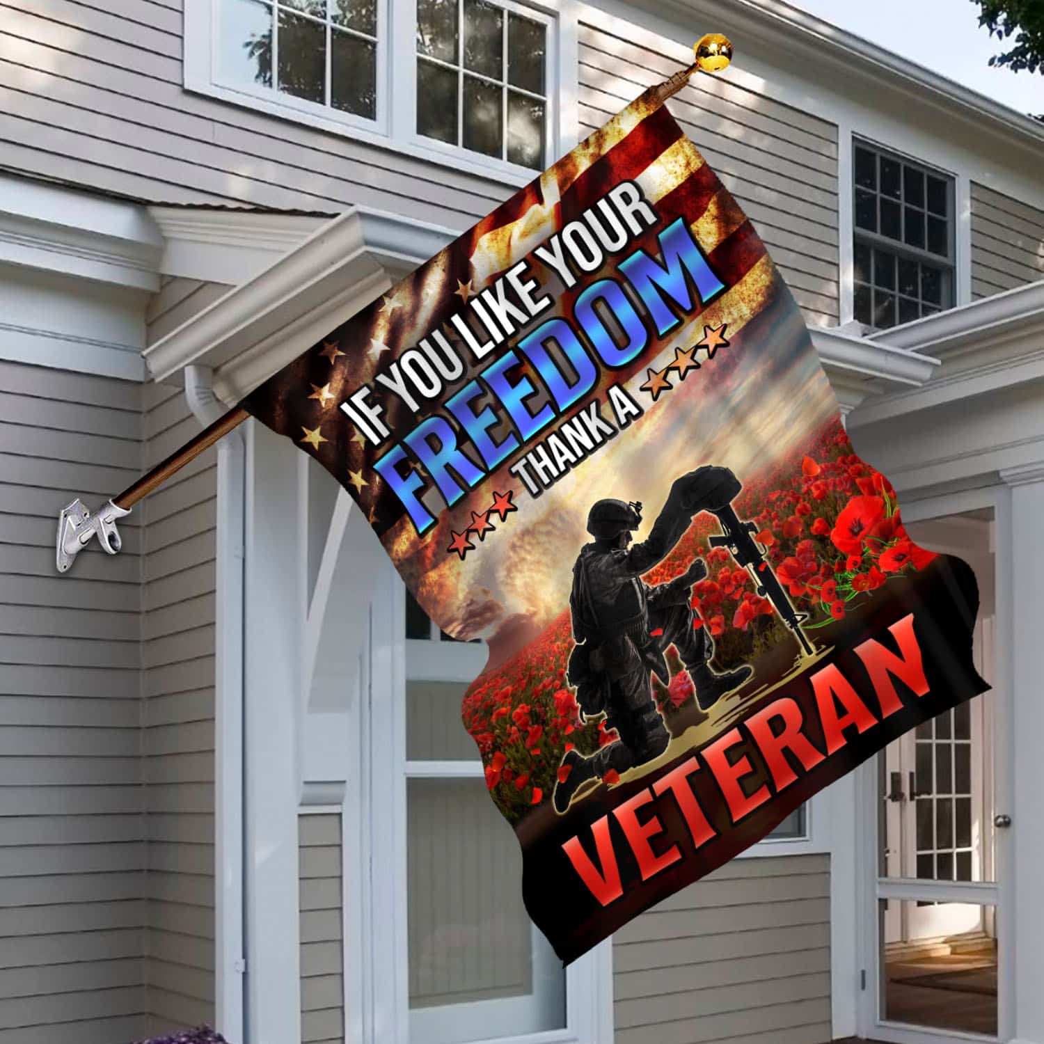 Let’s Shop If You Like Your Freedom Thank a Veteran Memorial Day Poppy Remembrance Day Decorative Garden Flag – House Flag!