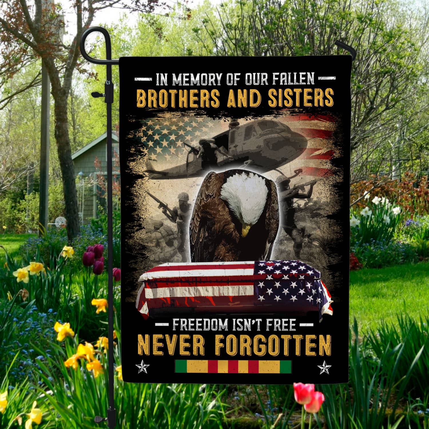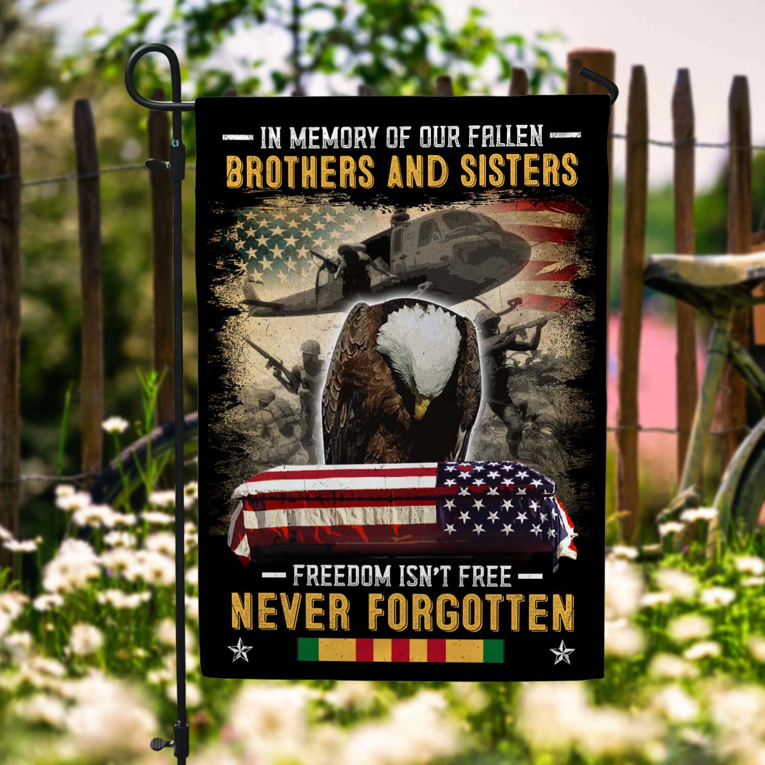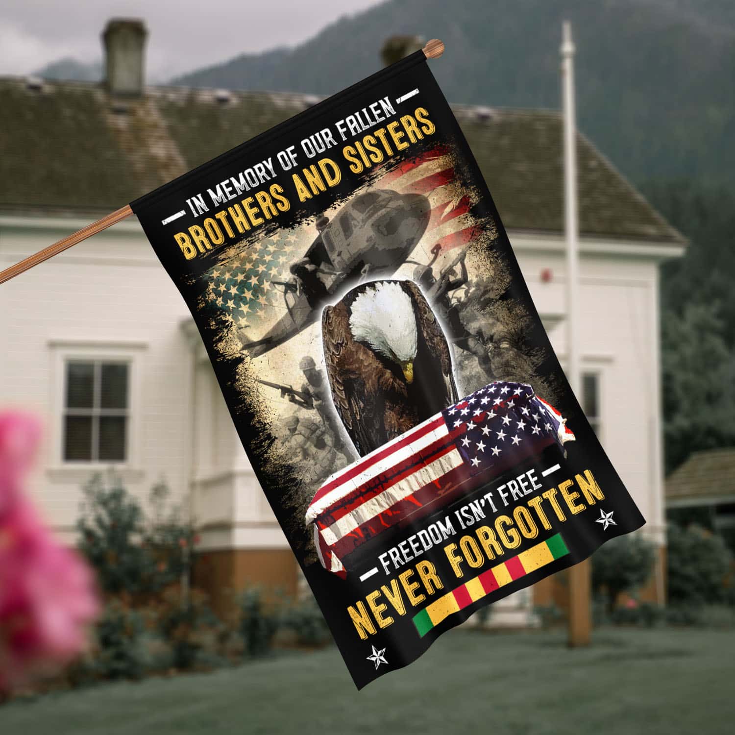 Let’s Shop In Memory of Our Fallen Brothers and Sisters Freedom Isn’t Free Never Forgotten Veteran Decorative Garden Flag – House Flag!