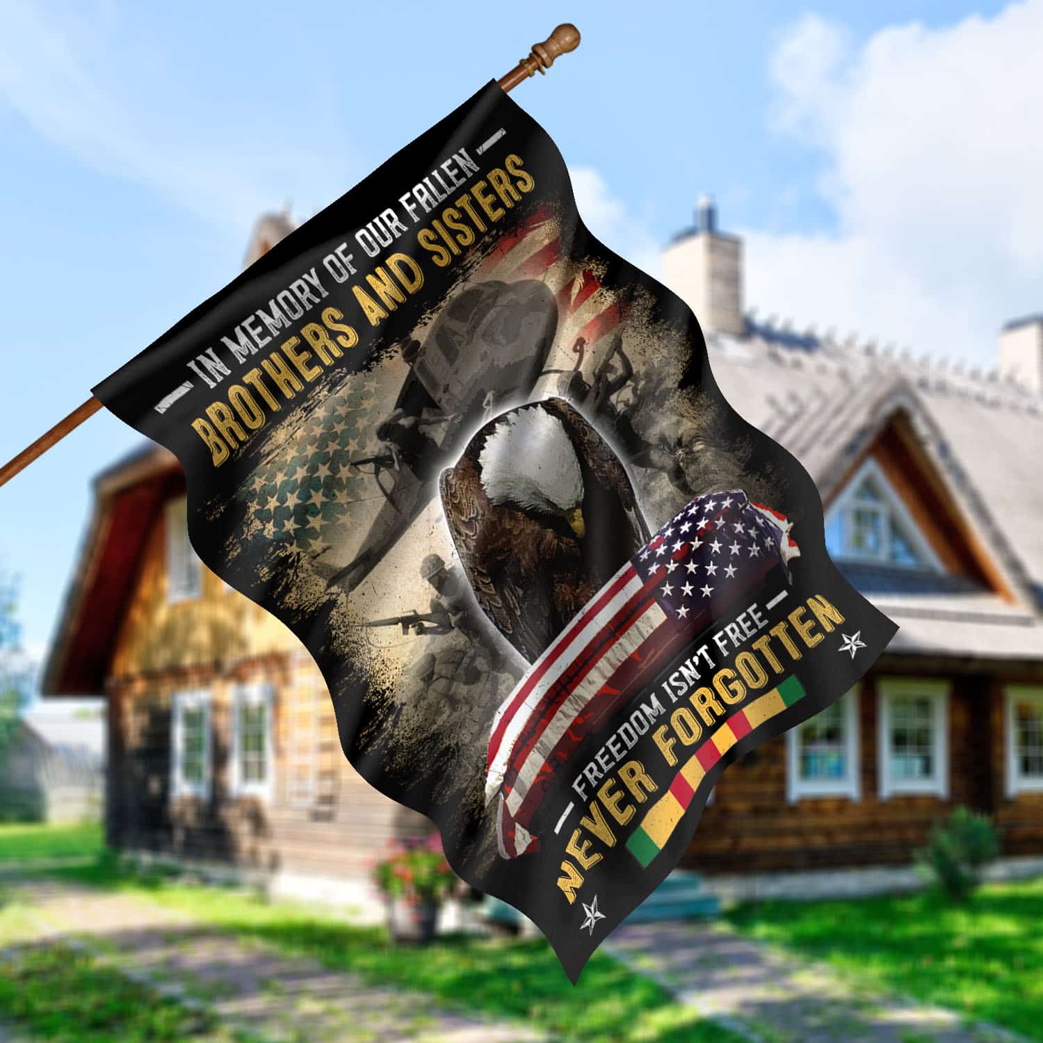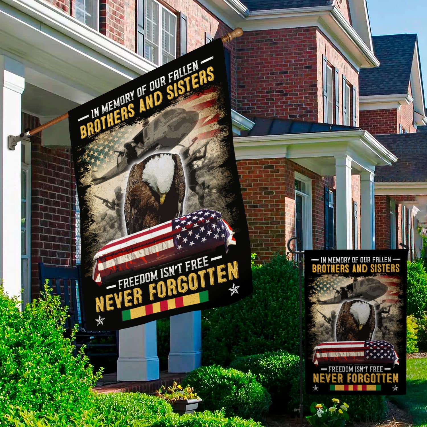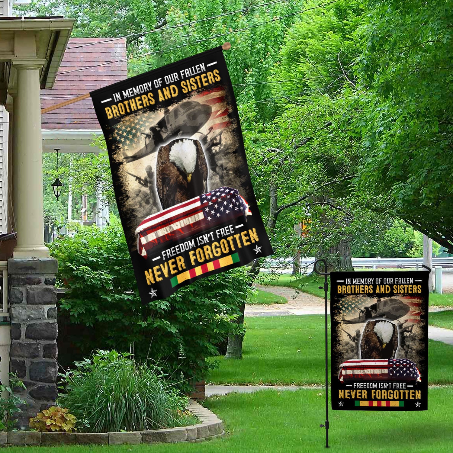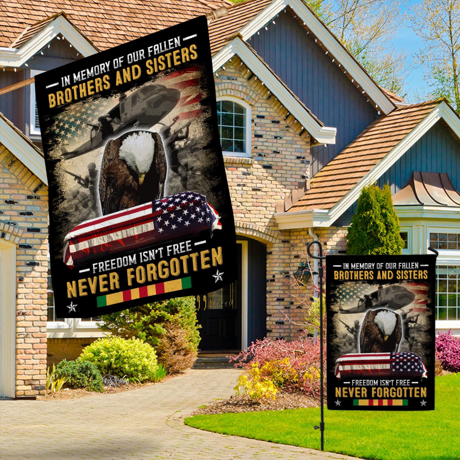 Let’s Shop In Memory of Our Fallen Brothers and Sisters Freedom Isn’t Free Never Forgotten Veteran Decorative Garden Flag – House Flag!