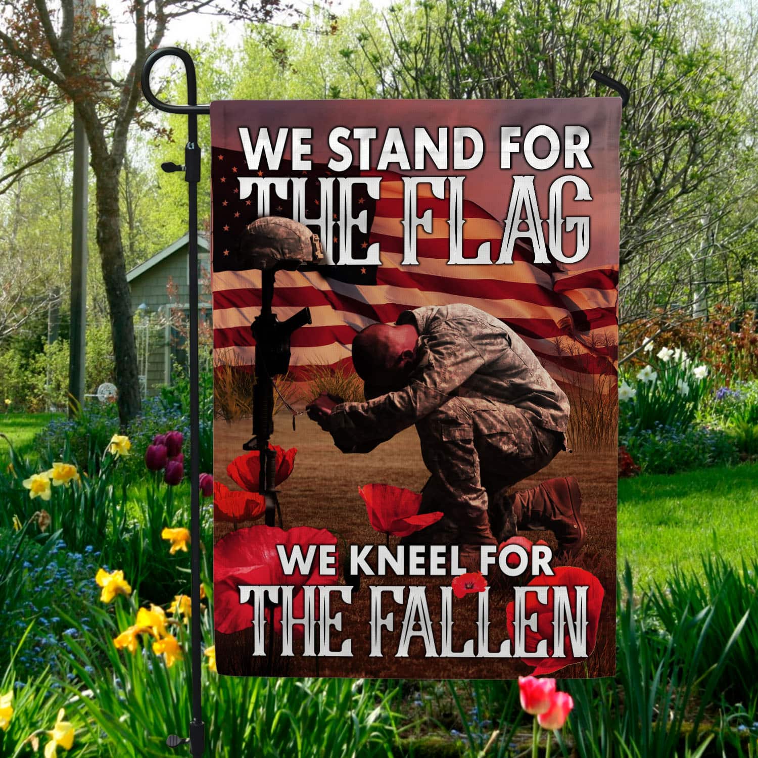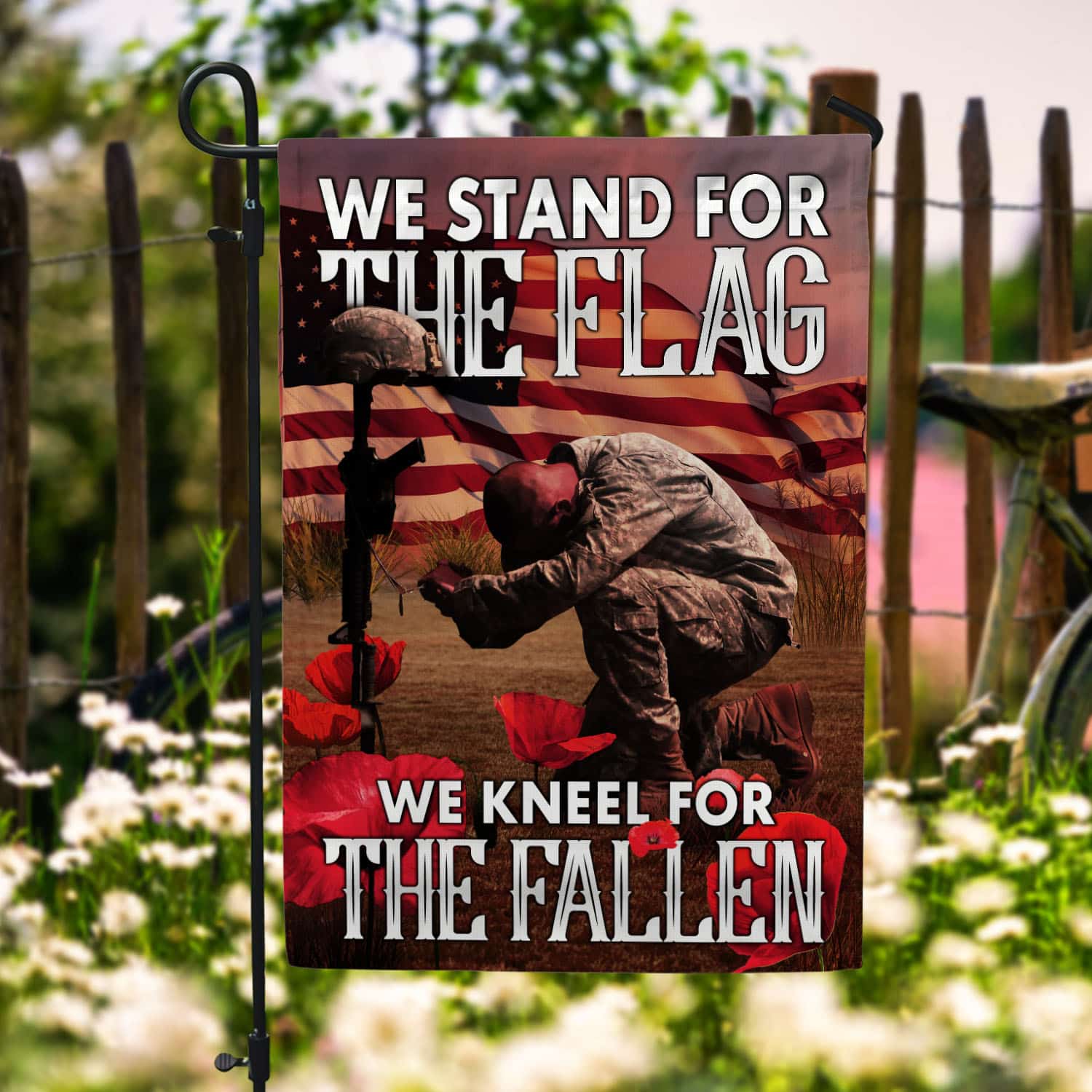 Let’s Shop We Stand for The Flag We Keel for The Fallen Memorial Day Poppy Remembrance Day Decorative Garden Flag – House Flag!