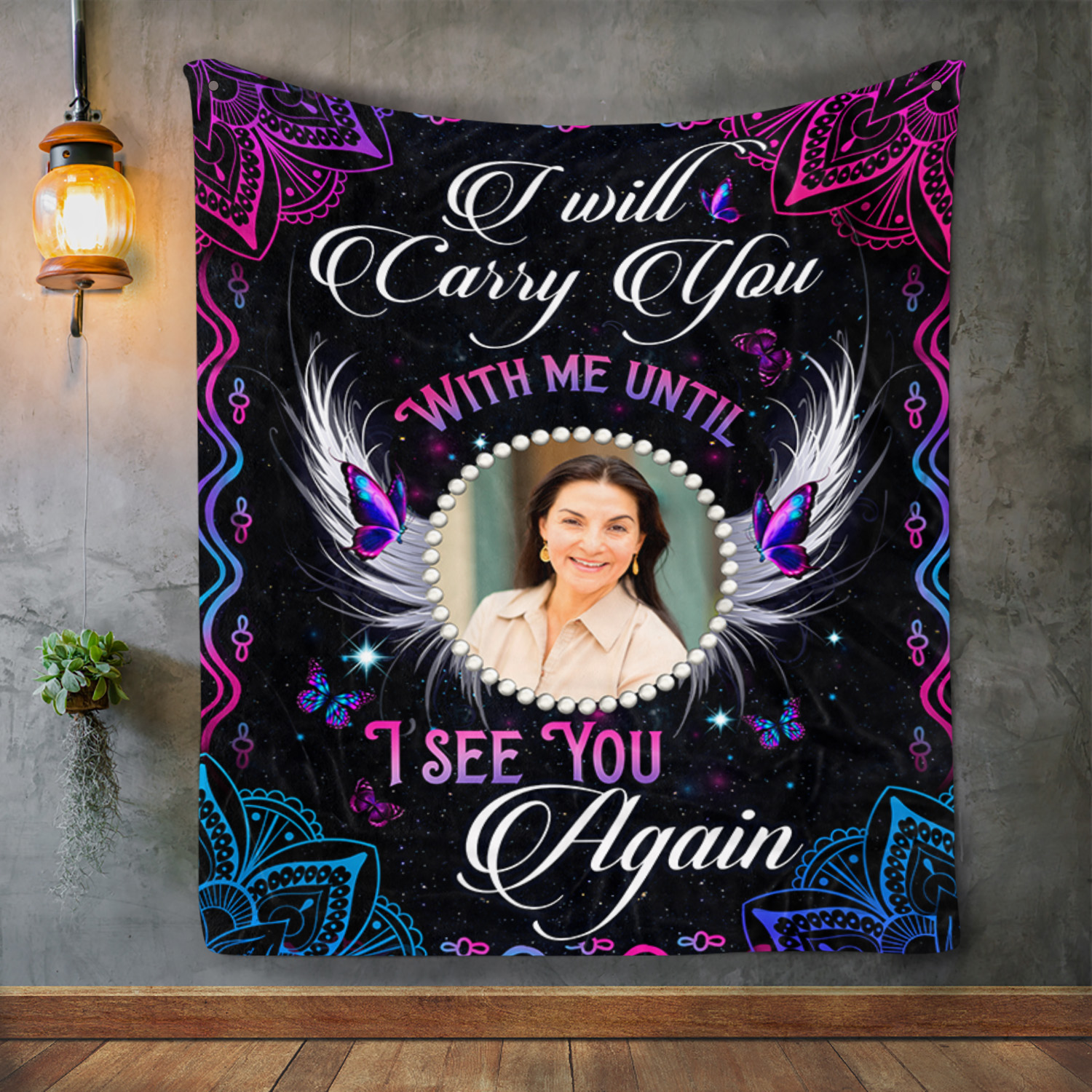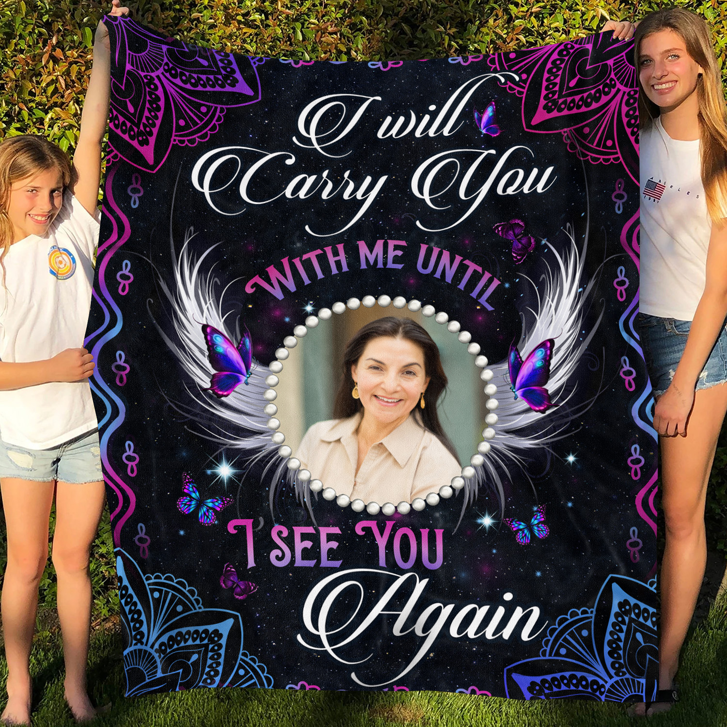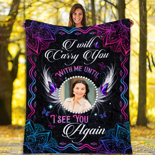 Let’s Shop Custom Photo I Will Carry You With Me Until I See You Again Fleece Blanket – Mink Blanket – Woven Blanket!