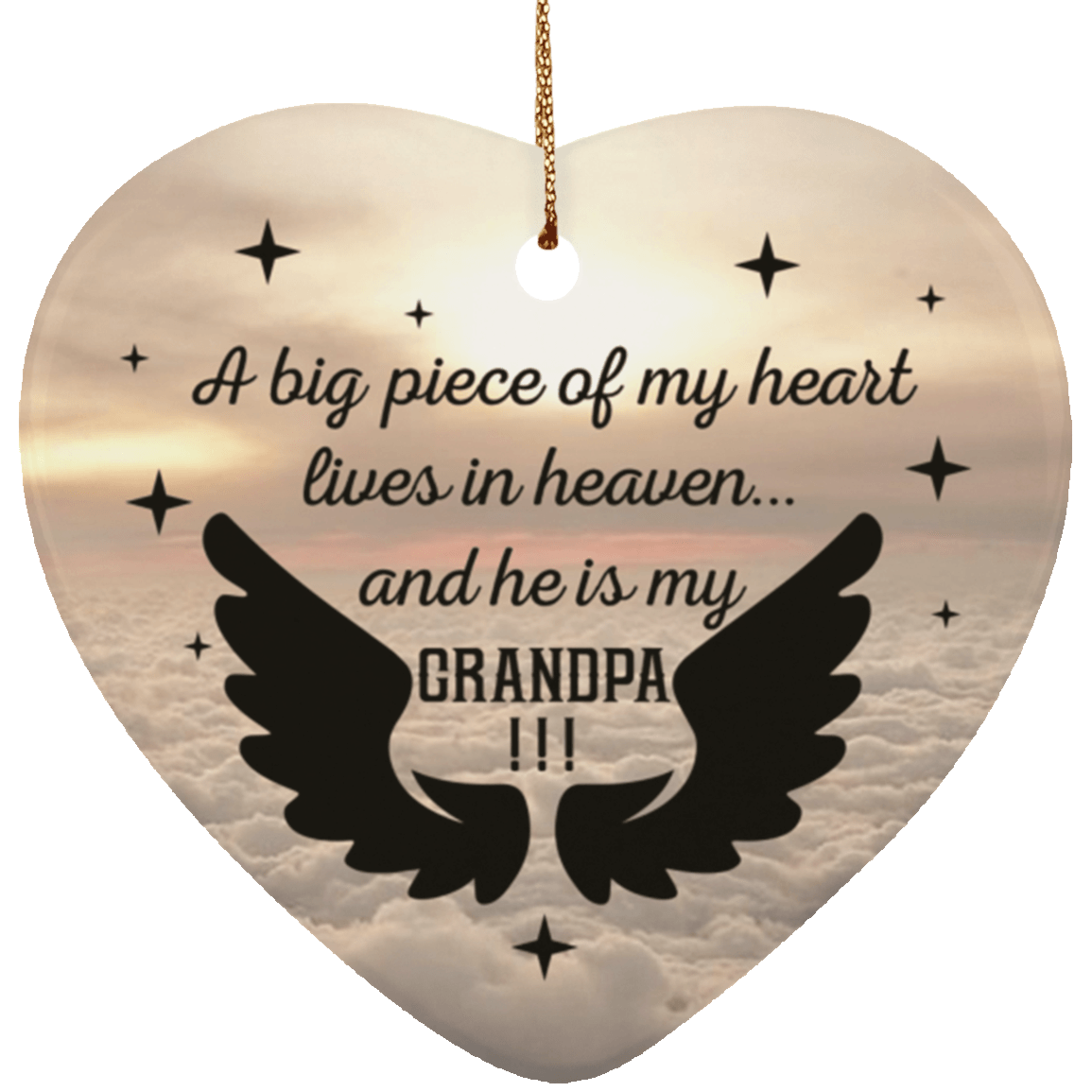 A Big Piece Of My Heart Lives In Heaven And He Is My Grandpa Heart Ornament Keepsake – Christmas Ornament
