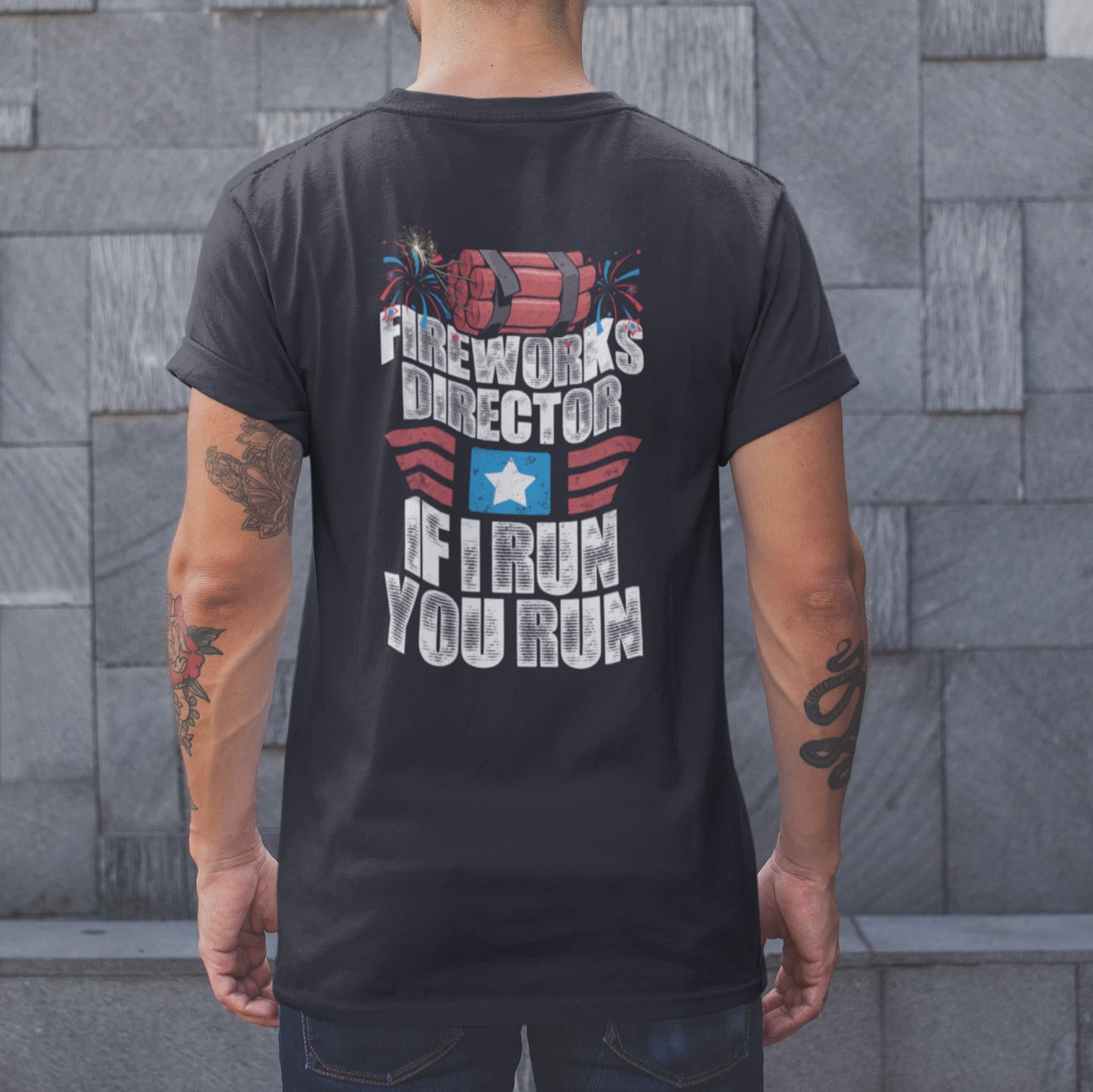 Fireworks Director If I Run You Run Back Print T Shirt – Funny Fireworks Shirt For 4th Of July