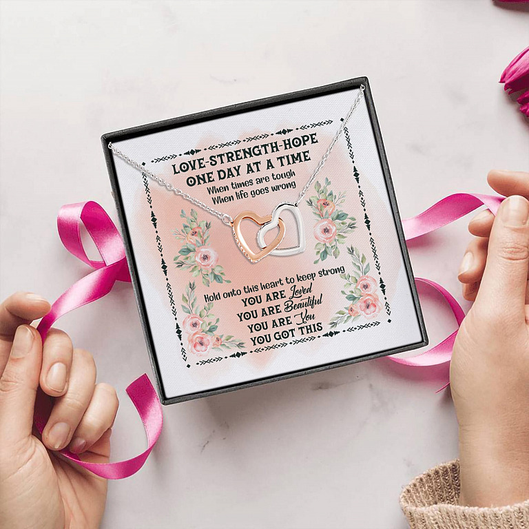Let’s Shop You Got This Mental Health Support Gift Joined Interlocking Hearts Pendant Necklace!