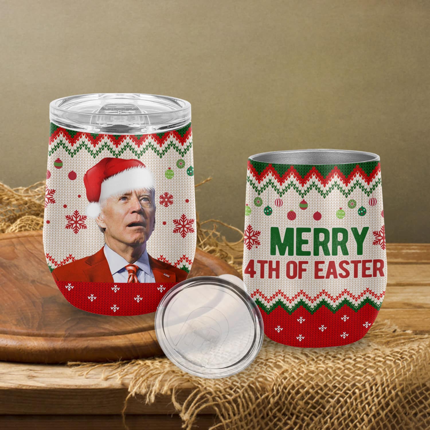Let’s Shop Merry 4th Of Easter Funny Biden Ugly Christmas Vacuum Insulated Cup – Wine Tumbler with Lid!
