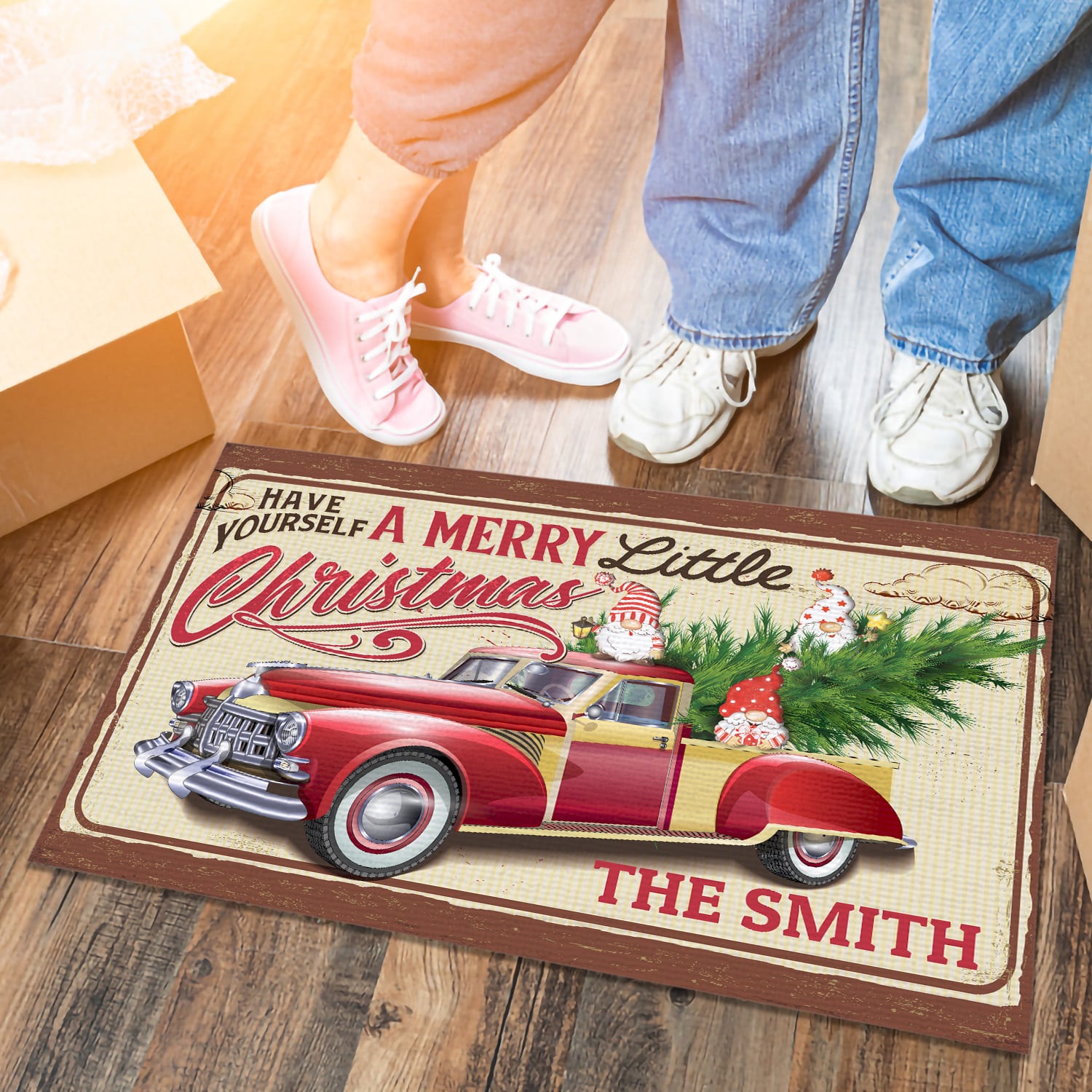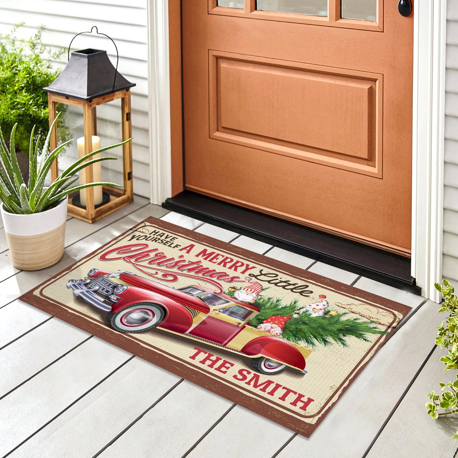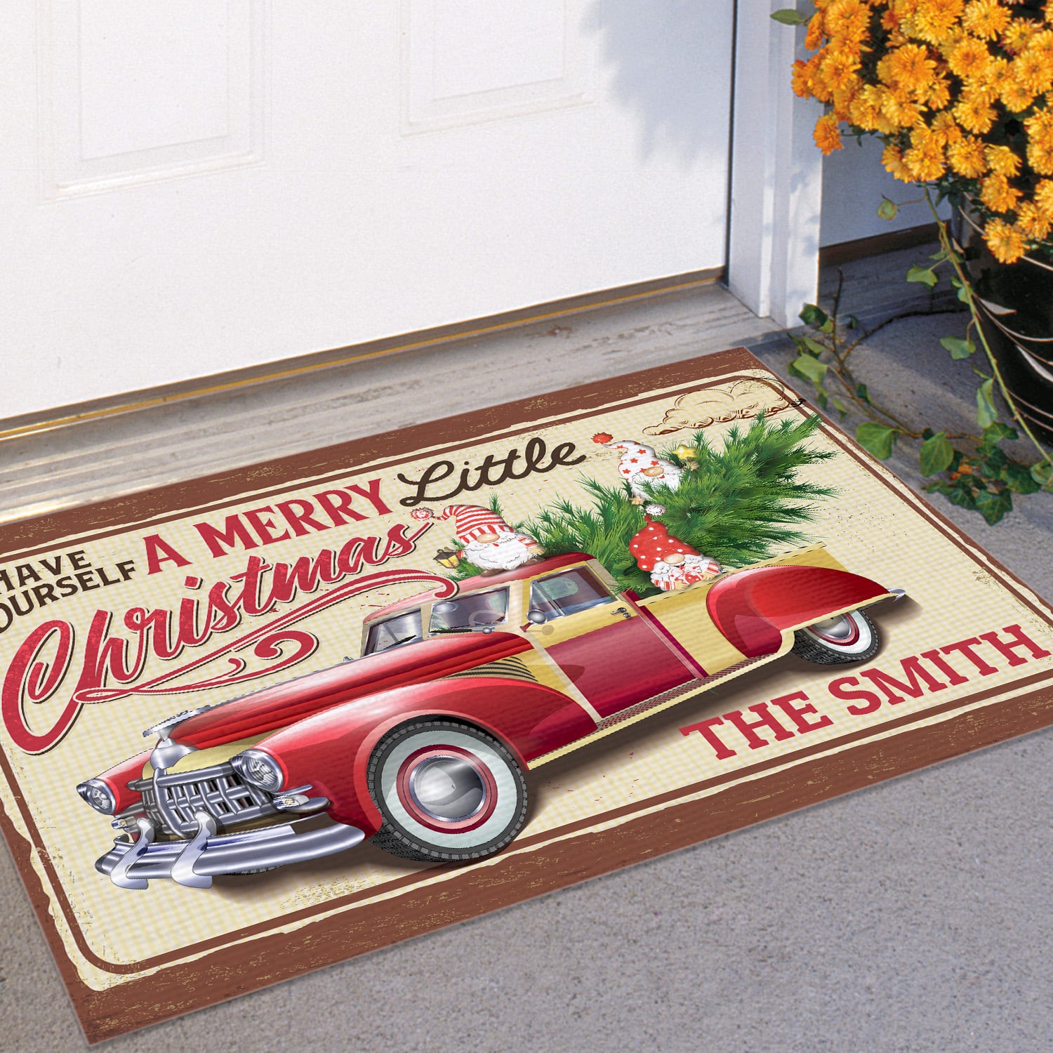 Let’s Shop Personalized Family Name Have Yourself a Merry Little Christmas Gnome Truck Doormat – Christmas Outdoor Indoor Doormat!