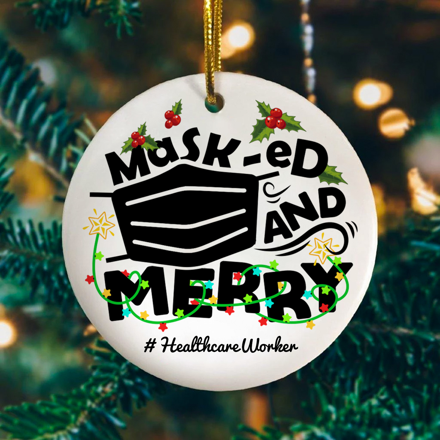 Let’s Shop Personalized Mask-ed And Merry Nurse Life Christmas 2020 Decorative Ornament – Funny Nurse Xmas Keepsake Gift!
