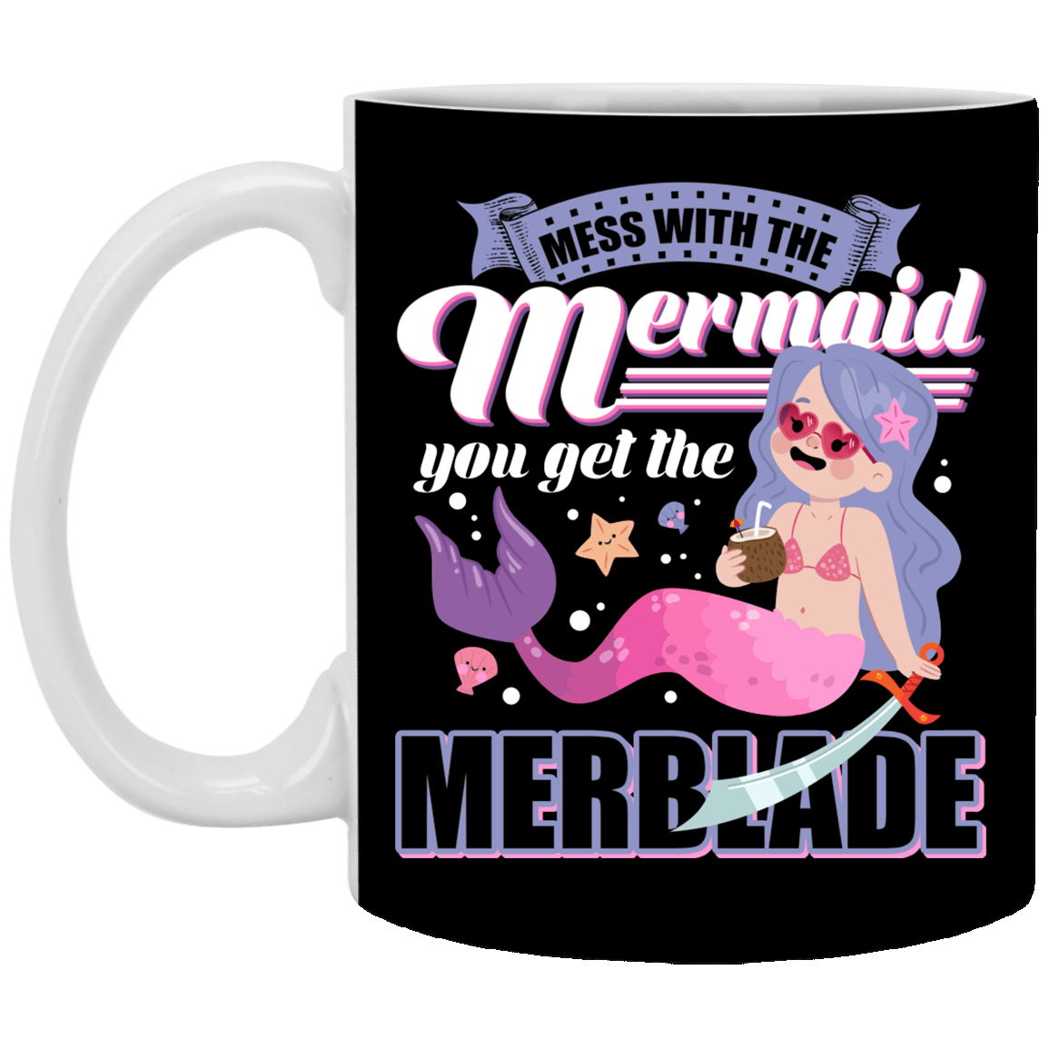 Mess With The Mer-maid You Get The Merblade Ceramic Coffee Mug – Beer Stein -Water Bottle – Color Changing Mug