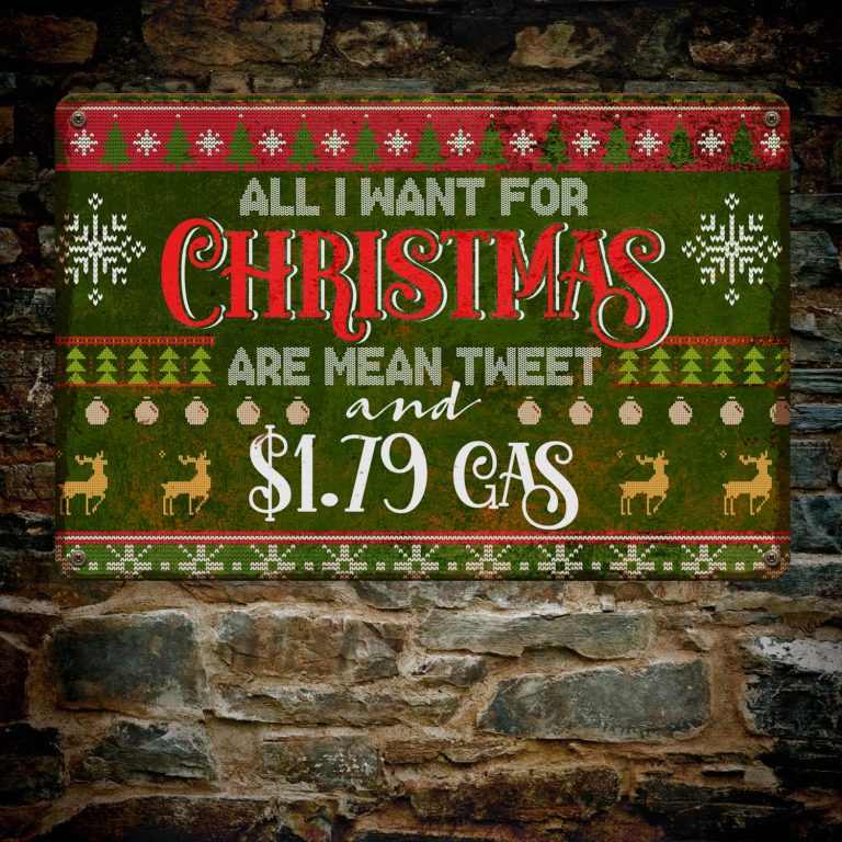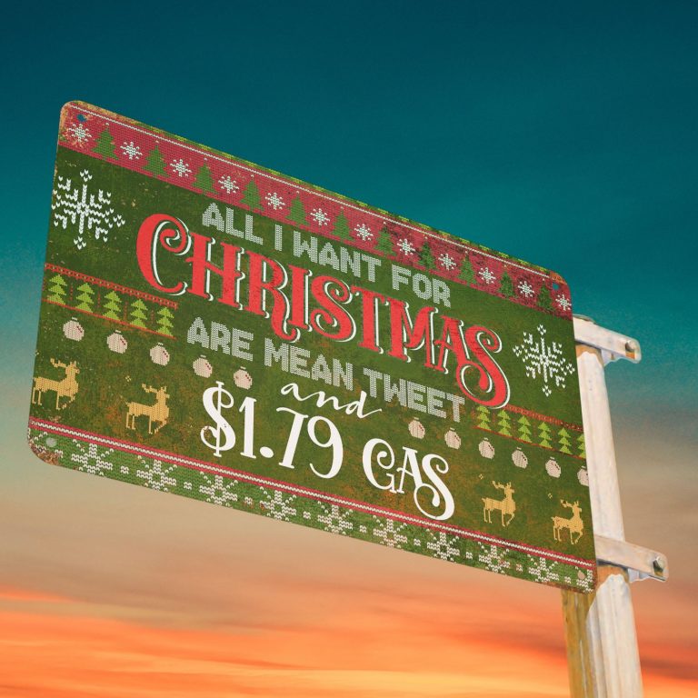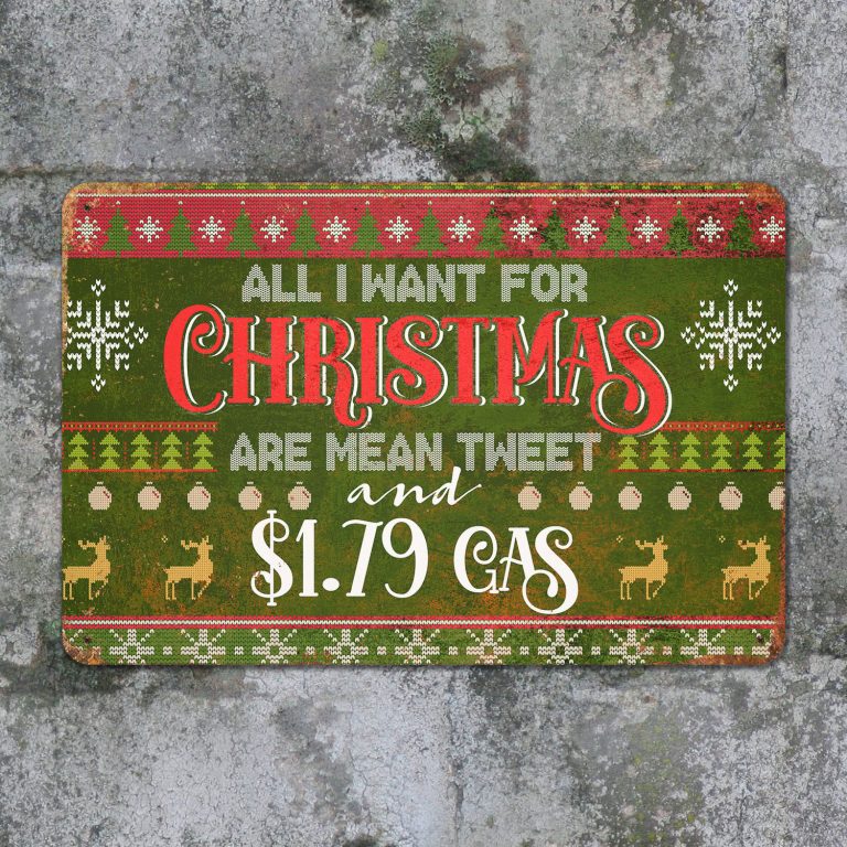 Let’s Shop All I Want For Christmas Are Mean Tweet And 1.79 Gas Funny Decorative Metal Sign – Indoor Outdoor Decor!