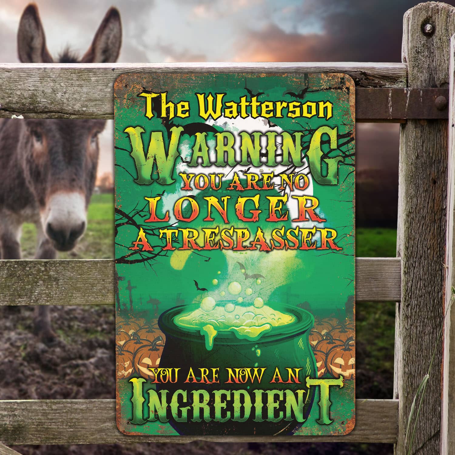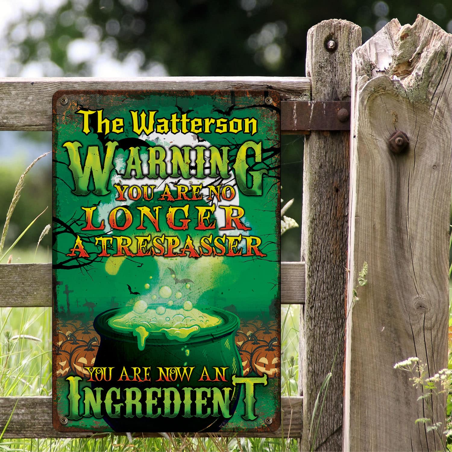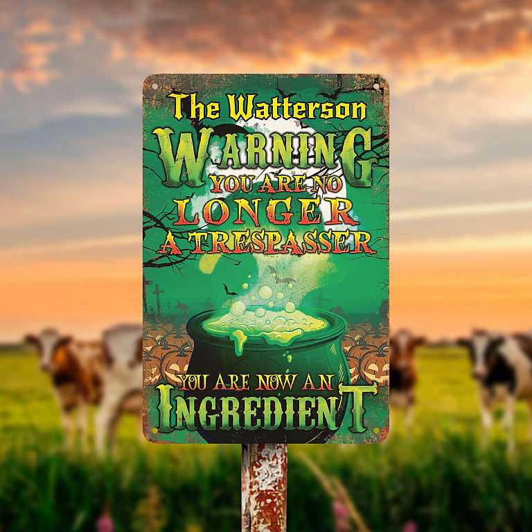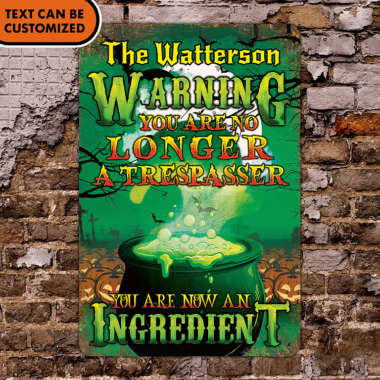 Let’s Shop Personalized Warning You Are No Longer A Trespasser You Are Now An Ingredient Funny Witch Outdoor Decorative Metal Sign!
