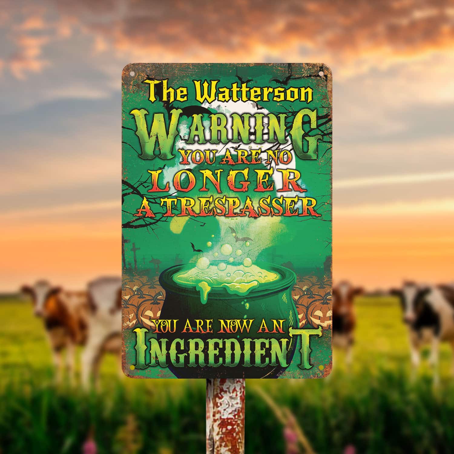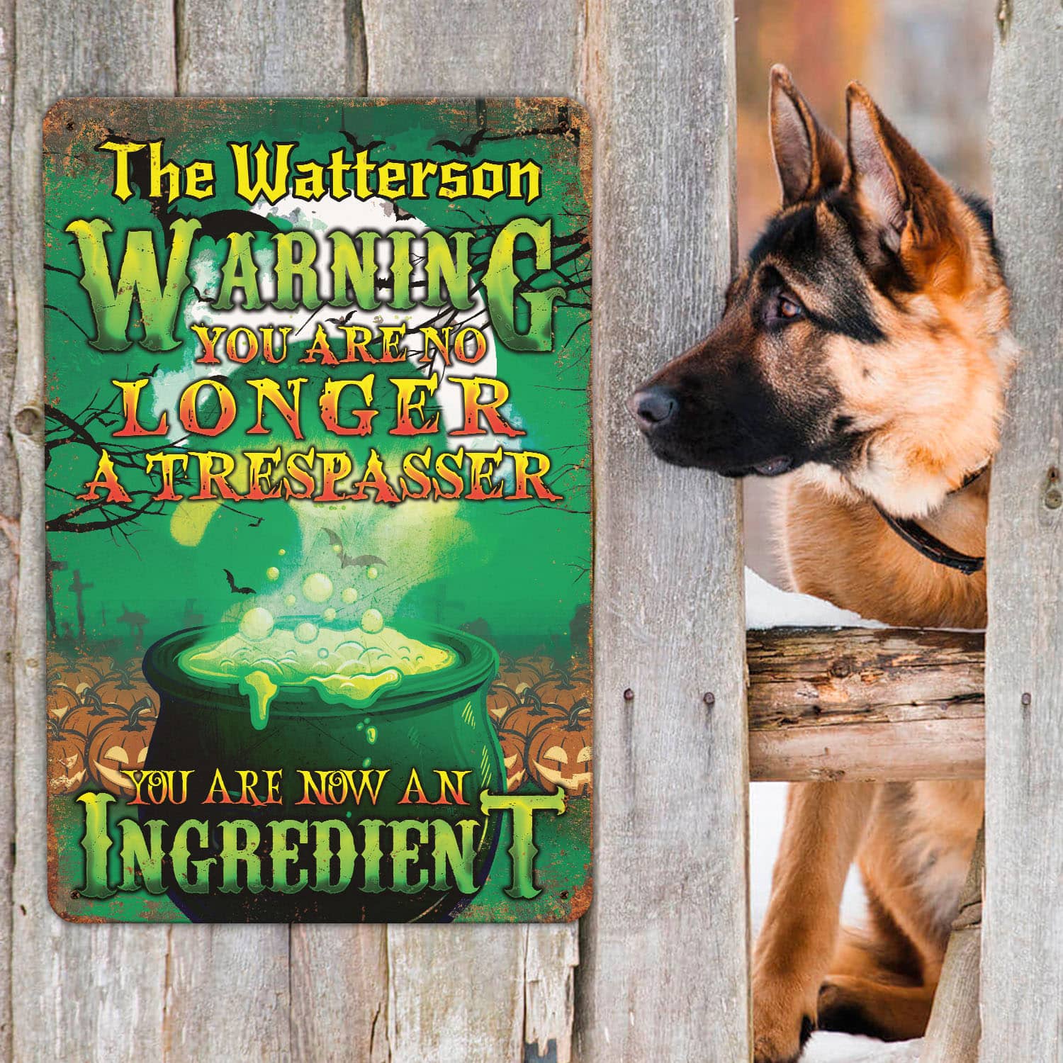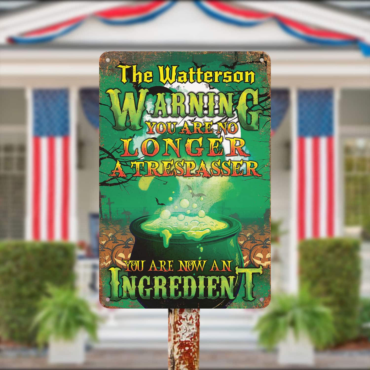 Let’s Shop Personalized Warning You Are No Longer A Trespasser You Are Now An Ingredient Funny Witch Outdoor Decorative Metal Sign!